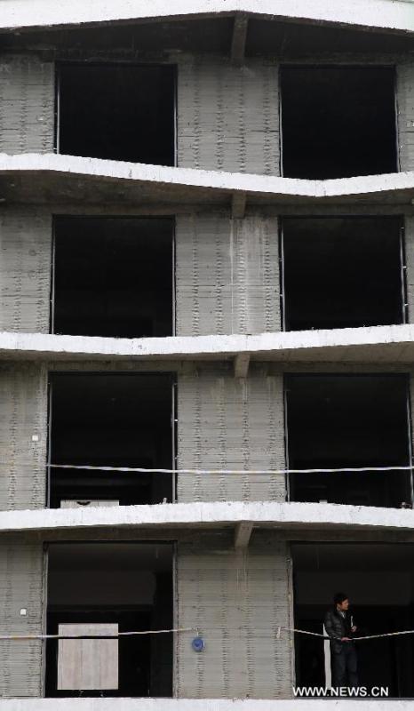 A villa built by 3D printing technology is seen in Suzhou industrial park of east China's Jiangsu province, Jan 18, 2015. By using the technology, the stand-along villa and a six-story full-sized building have been printed out here recently. The walls of these houses were created by giant 3D printers which adding successive layers of material to form the shape. And the material is made from construction wastes. (Xinhua/Pei Xin)