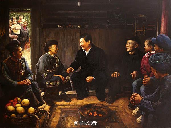 Oil paintings about Chinese president Xi Jinping have hit the headlines. Inspired by historical documents and photos over the past decades, those pictures created by oil painters depict President Xi in various fields including politics, economy, military, culture, education and sports. [Photo/ Weibo account of PLA Daily]