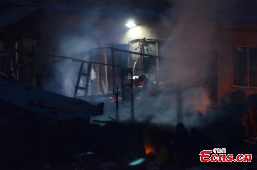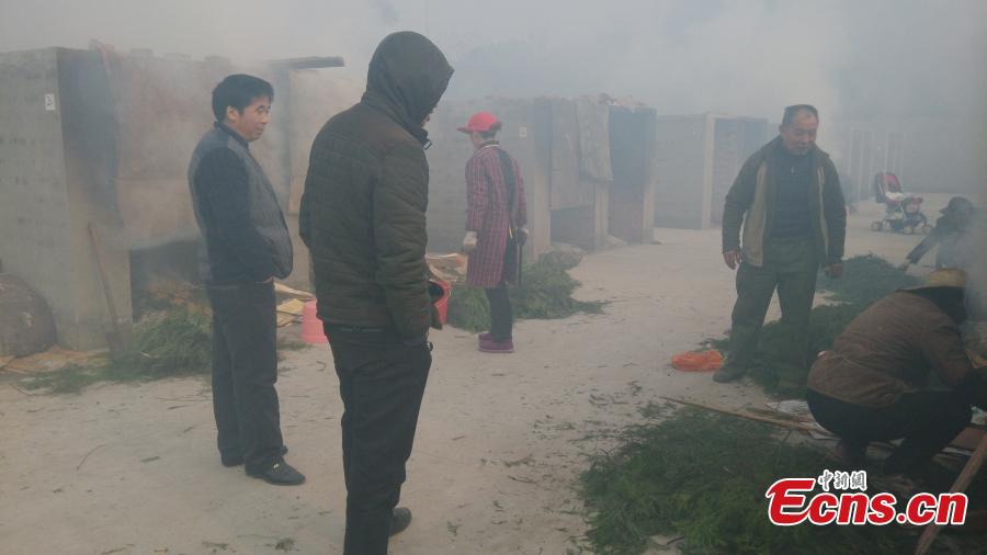 Smoke rises as locals make smoked bacon in Dazhou city, Southwest China's Sichuan province, Jan 20, 2015. An official from the city said one of the causes of the city's lingering smog is smoking bacon, a traditional method of preserving pork, especially before the Spring Festival, China's Lunar New Year. The city has designated places in suburban area for people to make smoked bacon. [China News Service/Zhong Xin]