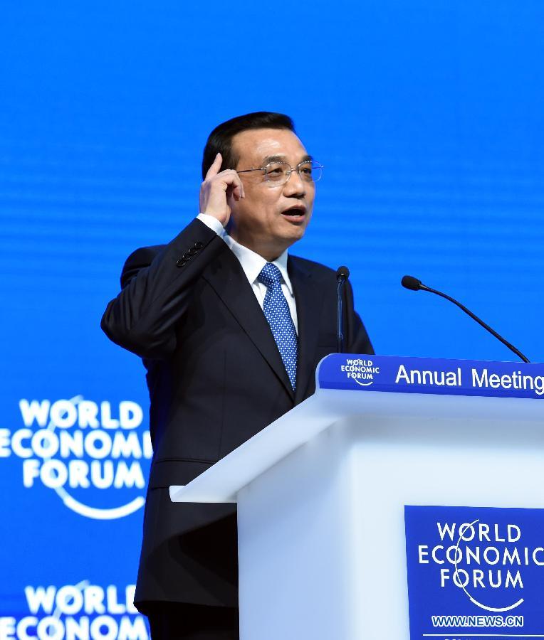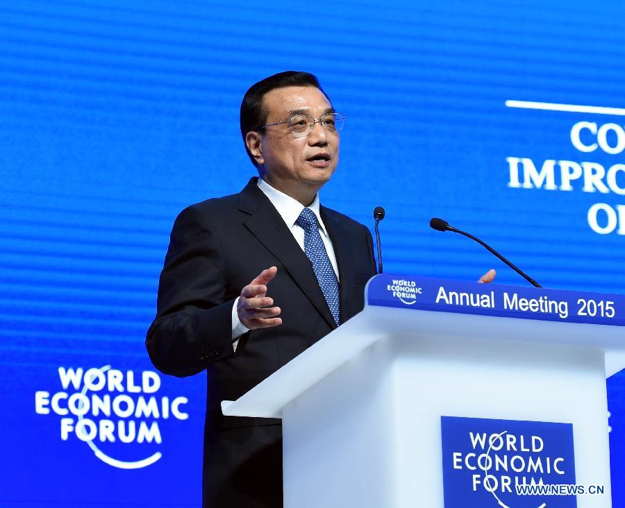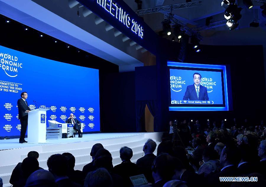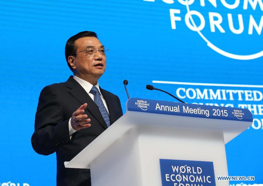 Chinese Premier Li Keqiang delivers a keynote speech at the World Economic Forum (WEF) annual meeting in Davos, Switzerland, on Jan. 21, 2015. (Xinhua/Rao Aimin)