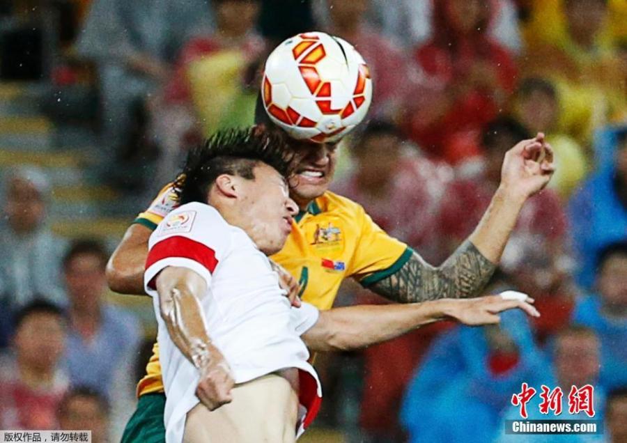 China fights with the host Australia in the quarterfinal AFC Asian Cup on January 22, 2015, in Brisbane, Australia. [Photo: China News Service/Yang Yanyu]