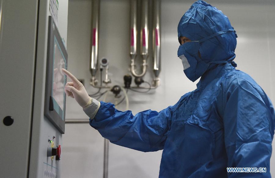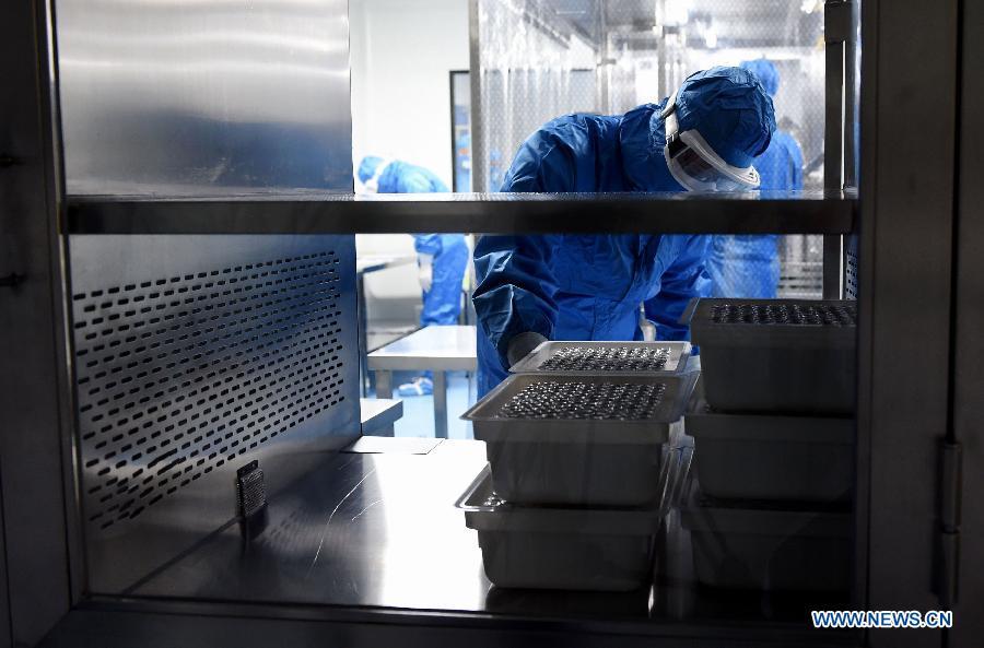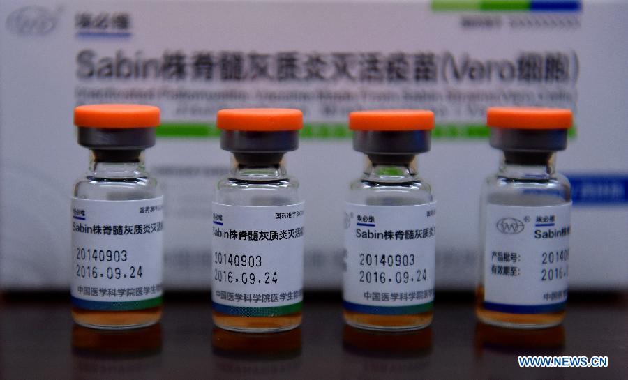 Photo taken on Jan. 22, 2015 shows the vaccine (S-IPV) against poliomyelitis at the Institute of Medical Biology of the Chinese Academy of Medical Sciences, located in Kunming, capital of southwest China's Yunnan Province. China's drug watchdog has licensed a new vaccine against the poliomyelitis, the Ministry of Science and Technology announced on Jan. 15. The S-IPV is a breakthrough for China to keep the polio-free status and for the world to kill the polio. The WHO is considering use of the new vaccine in its global polio treatment program. (Xinhua/Lin Yiguang)