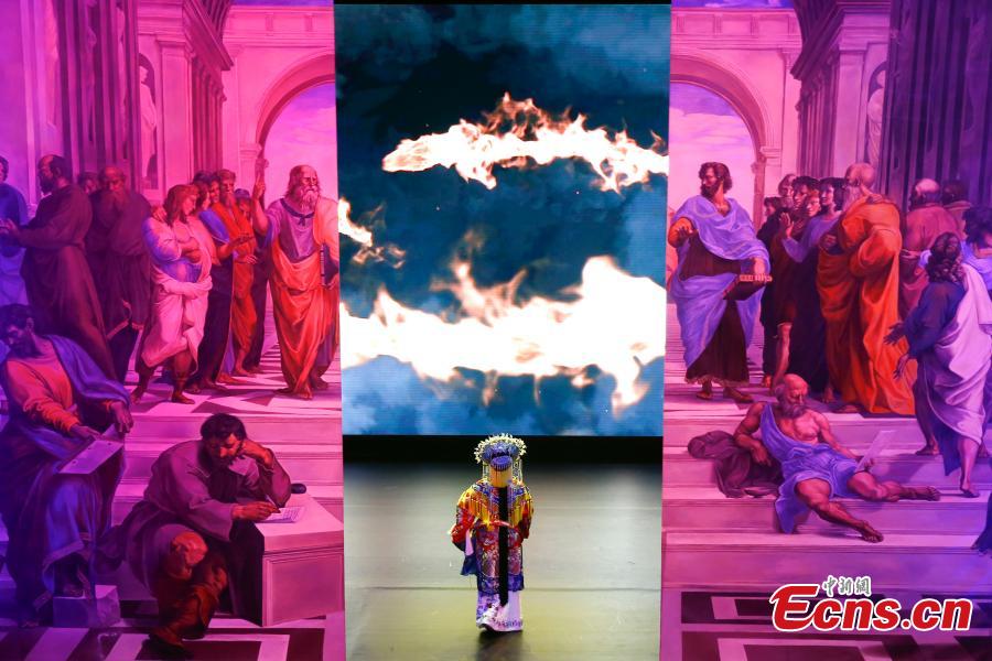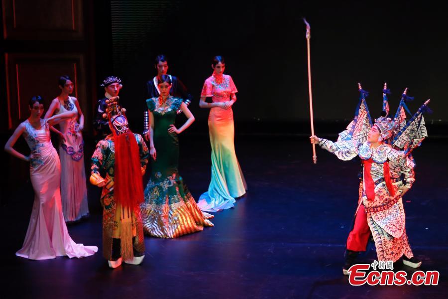 A stylish Peking Opera show is put on the stage in Beijing, Jan 22, 2015. The innovative combination of Peking Opera and Western Opera brought audiences quite a feast. [Photo: China News Service/ Sheng Jiapeng]