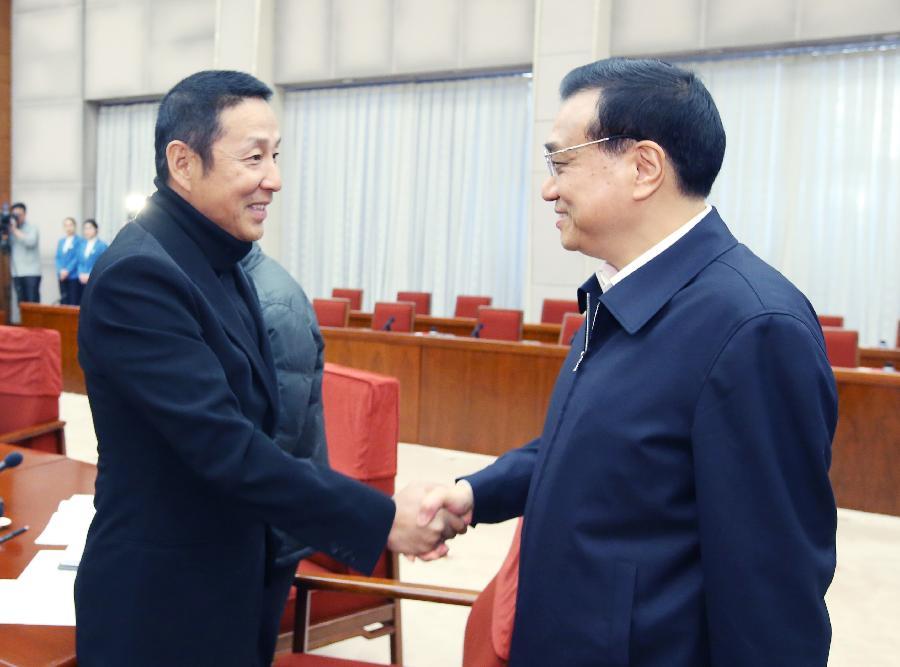 Chinese Premier Li Keqiang (rear) presides over a symposium to listen to advices from attendees of education, science and technology, culture, health and sports circles on the draft of government work report in Beijing, capital of China, Jan 27, 2015. (Xinhua/Yao Dawei)