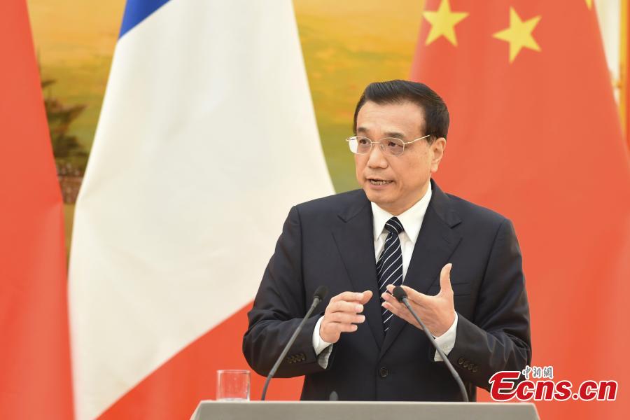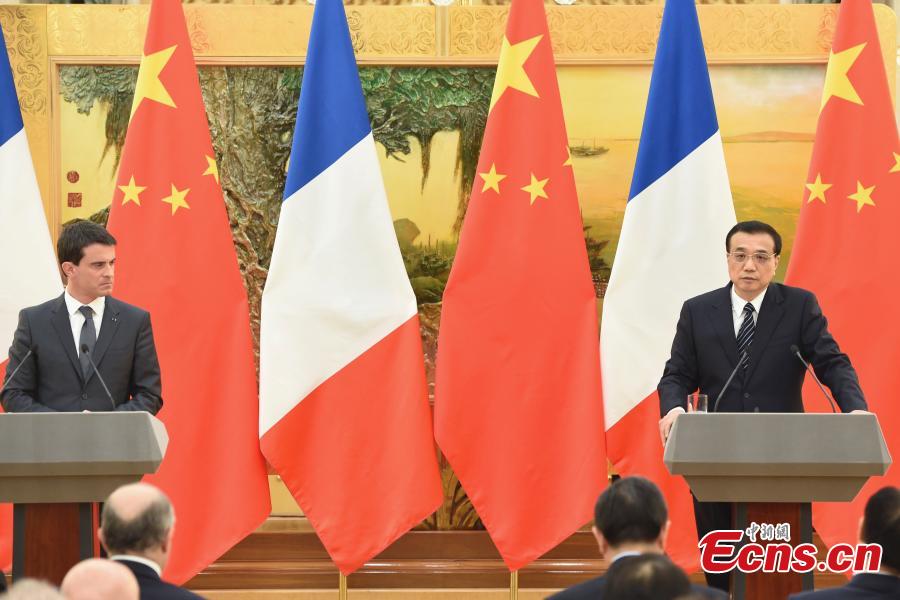 Chinese Premier Li Keqiang calls on Malaysia to continue to exert all efforts to find Malaysia Airlines flight MH370 and its passengers during a joint press conference with visiting French Prime Minister Manuel Valls in Beijing, Jan 29, 2015. Li offered deep sympathy and expressed sincere condolence to all the passengers on board, including 154 Chinese nationals and four French nationals. Malaysian Airlines flight MH370, with 239 people on board, disappeared shortly after taking off from Kuala Lumpur on March 8 en-route to Beijing. Director General of Malaysian Department of Civil Aviation Azharuddin Abdul Rahman said on Thursday that the Malaysian government officially declared MH370 an accident, and all people on board the plane were presumed dead. [Photo: China News Service/ Liao Pan]