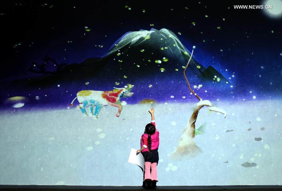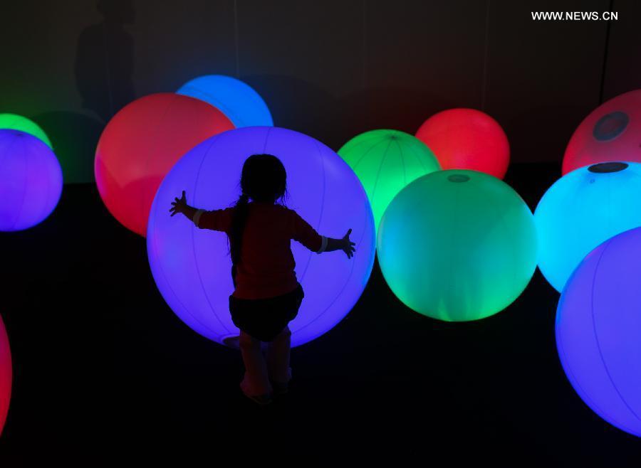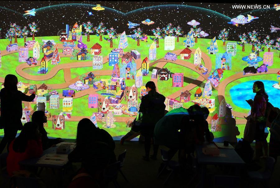 A girl experiences 3D technique during a 3D outer space expo opened Tuesday in Taipei, southeast China's Taiwan, Feb 3, 2015. (Xinhua/Jin Liwang)