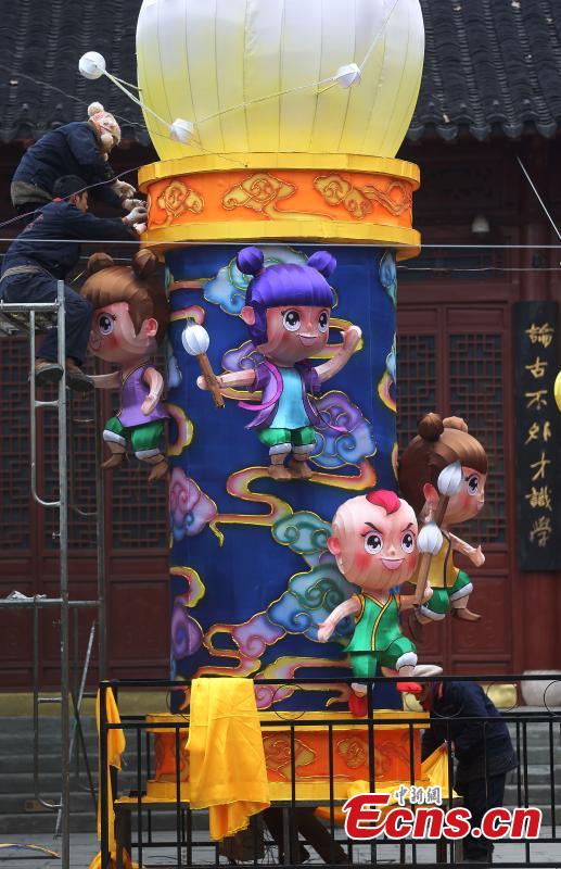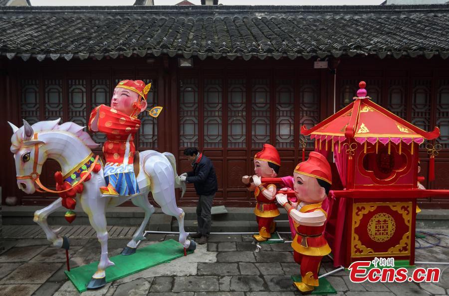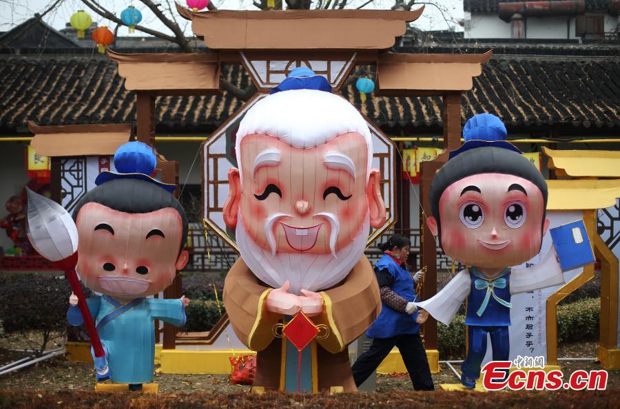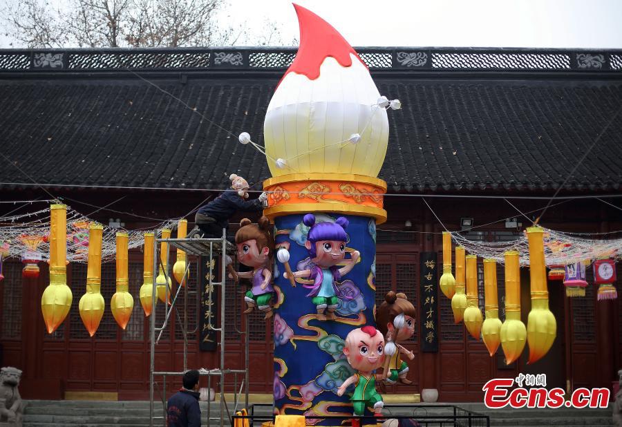 Lanterns are prepared for the upcoming festivals at the Confucius Temple in Nanjing, East China’s Jiangsu province, Feb 3, 2015. The temple, originally constructed in 1034 in the Song Dynasty, was a place to worship Confucius, the great philosopher and educator of ancient China. The Qinhuai River that runs in front of the temple is usually also well decorated with colorful lanterns for the Spring Festival (China’s Lunar New Year), which falls this year on Feb 19, and Lantern Festival, celebrated on the fifteenth day of the first month in the lunar calendar. [Photo: China News Service/Yang Bo]