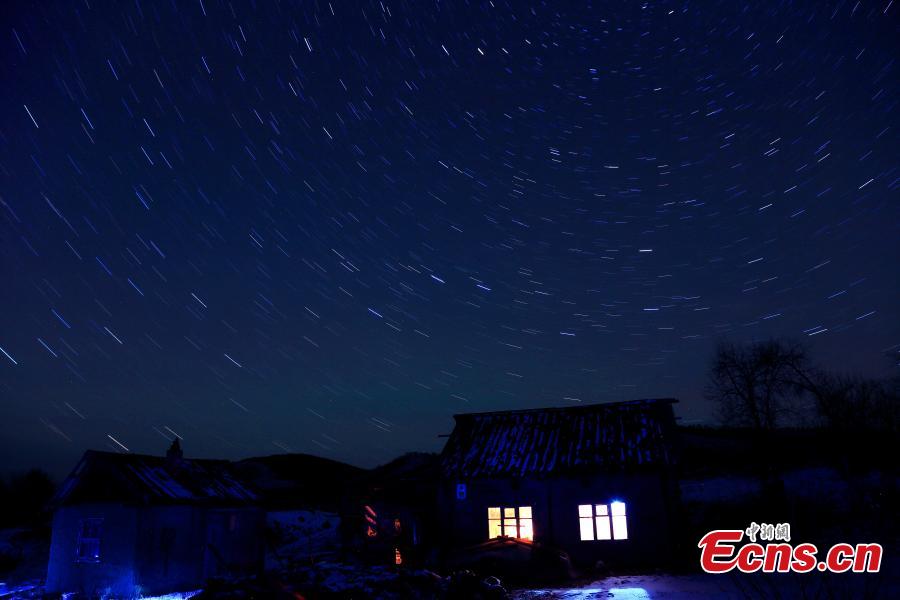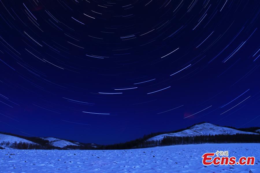 Photo taken between Oct 2014 and Jan 2015 through multiple exposures captures star trails in the sky over Hulunbuir city, North China’s Inner Mongolia autonomous region. [Photo: China News Service/ Liu Zhaoming]