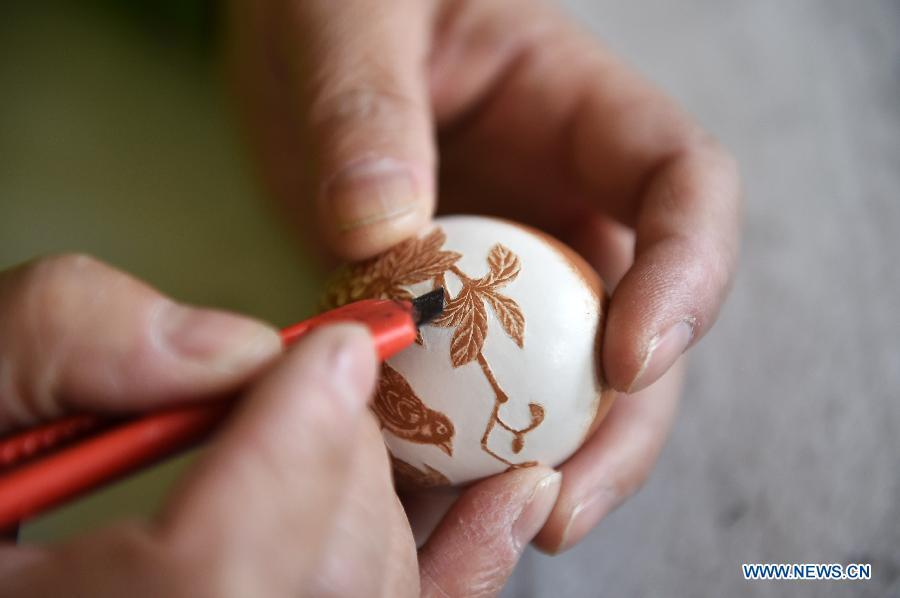 Art on fingers: egg handicrafts seen in NW China's Ningxia(1/3)