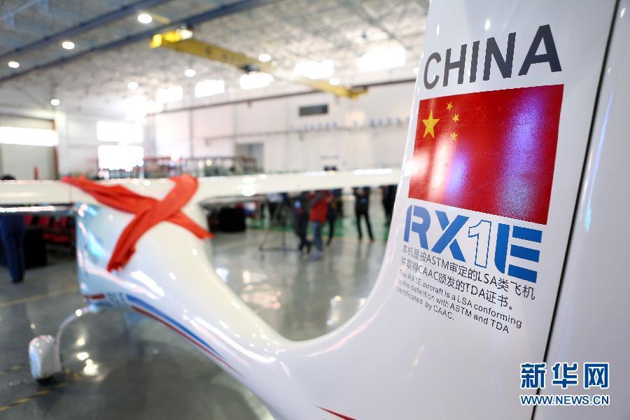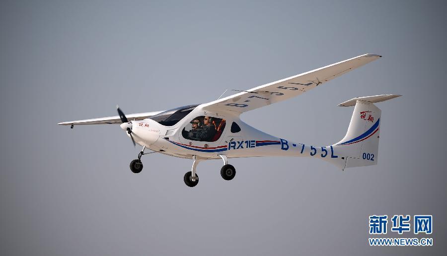 The RX1E is displayed in Shenyang, Northeast China's Liaoning province, Feb 6, 2015. China's first electric plane, RX1E, developed by Liaoning General Aviation Academy, has received its airworthiness certificate from the Civil Aviation Administration of China. The aircraft sells for 980,000 yuan ($156,700), with a flight cost of less than 20 yuan per hour.[Photo/Xinhua]