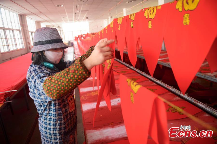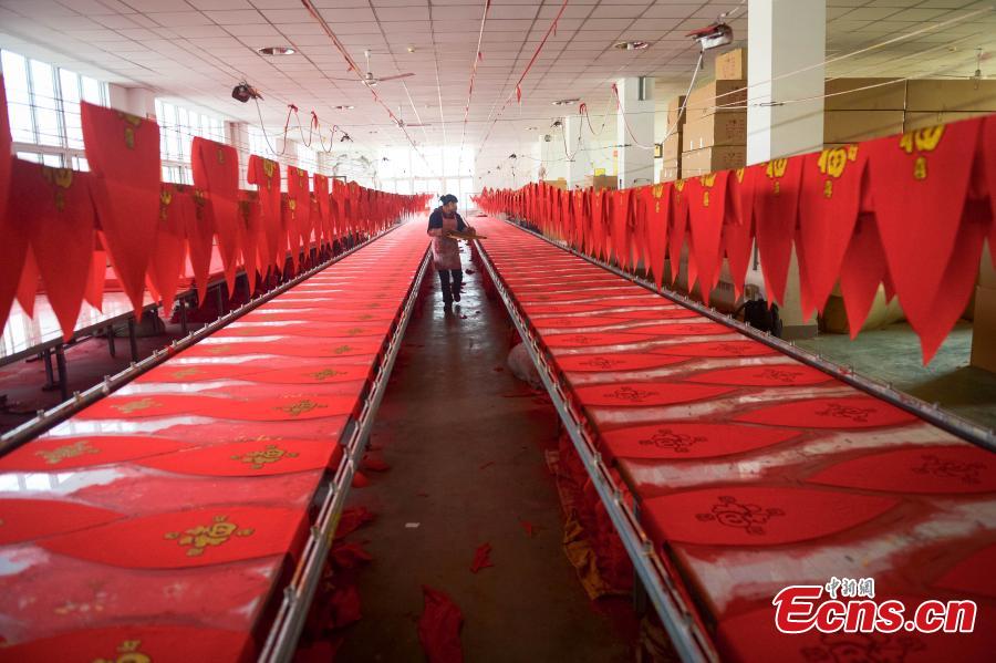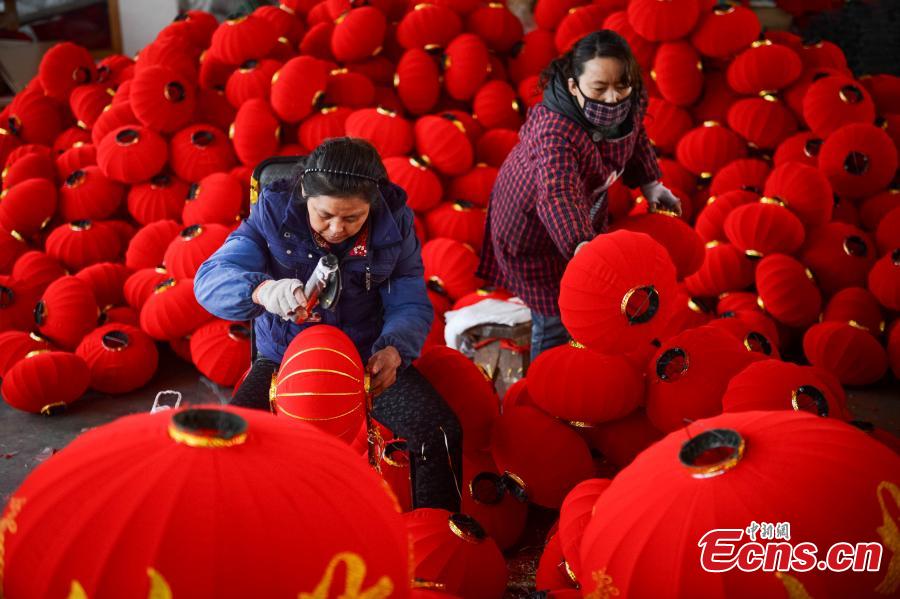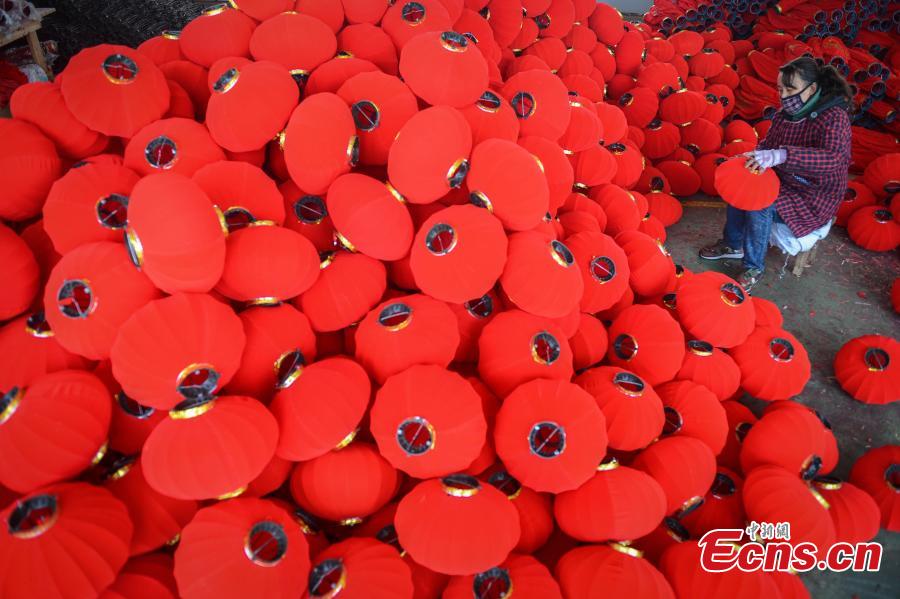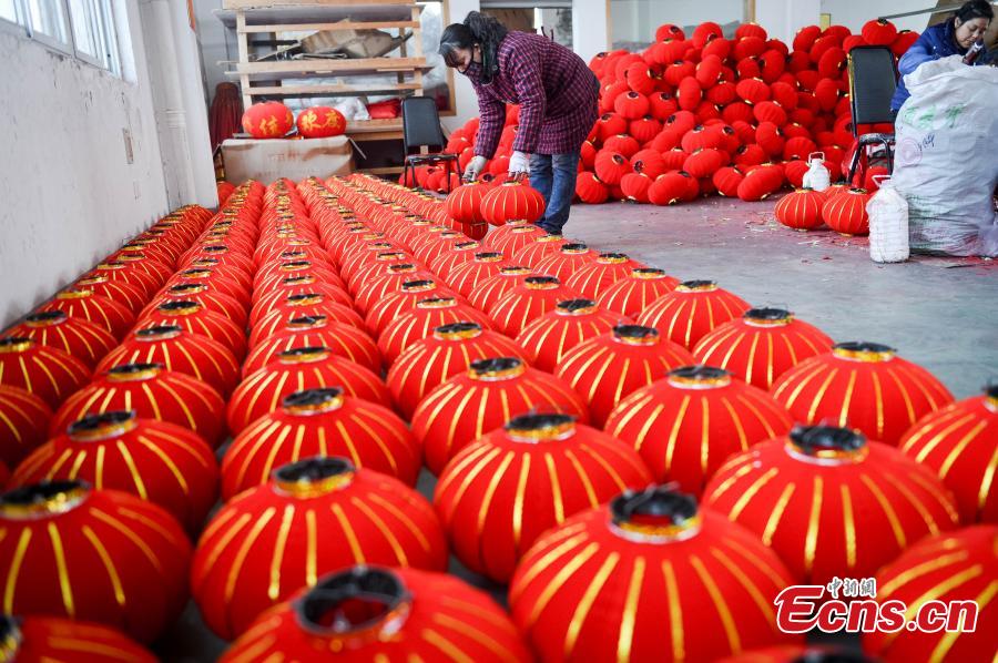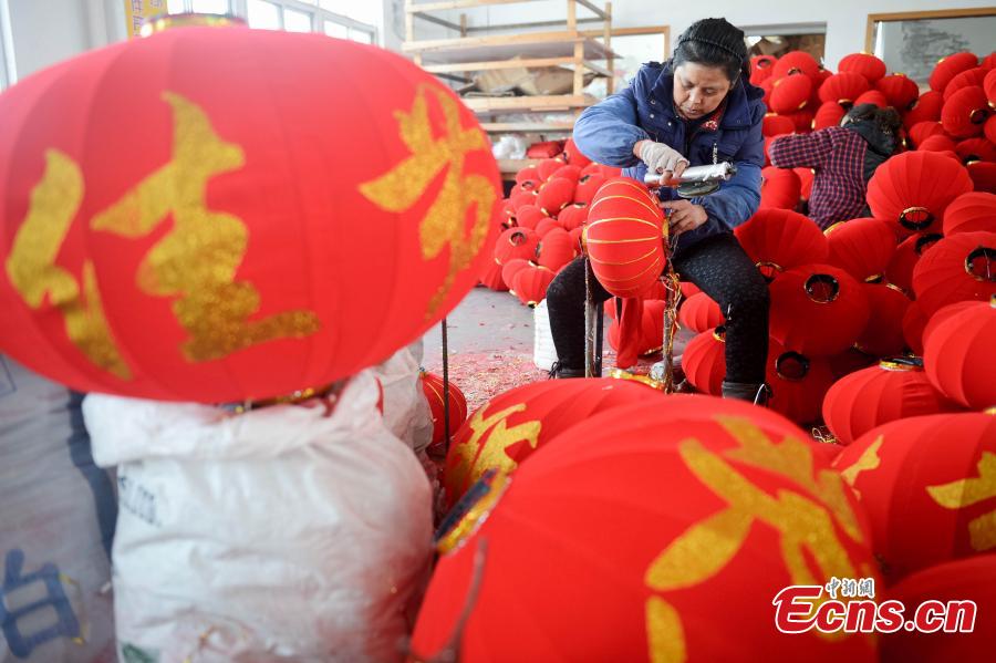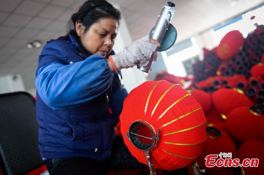 A worker makes red lanterns at an industrial zone in Hefei, East China’s Anhui province, Feb 11, 2015. The upcoming Spring Festival, China’s Lunar New Year, has seen an increasing demand of lanterns, usually used for decorations. [Photo: China News Service/Zhang Yazi]