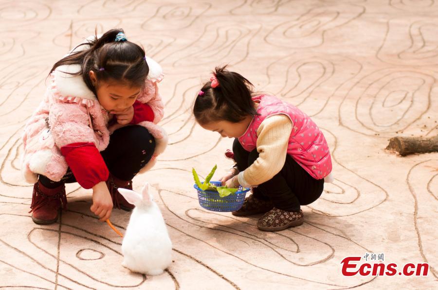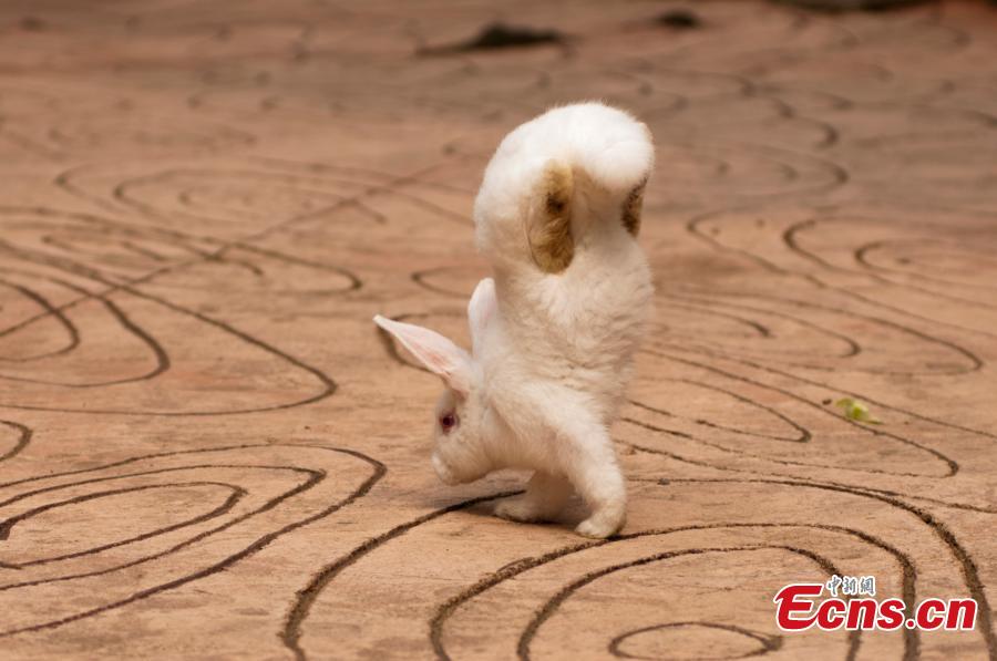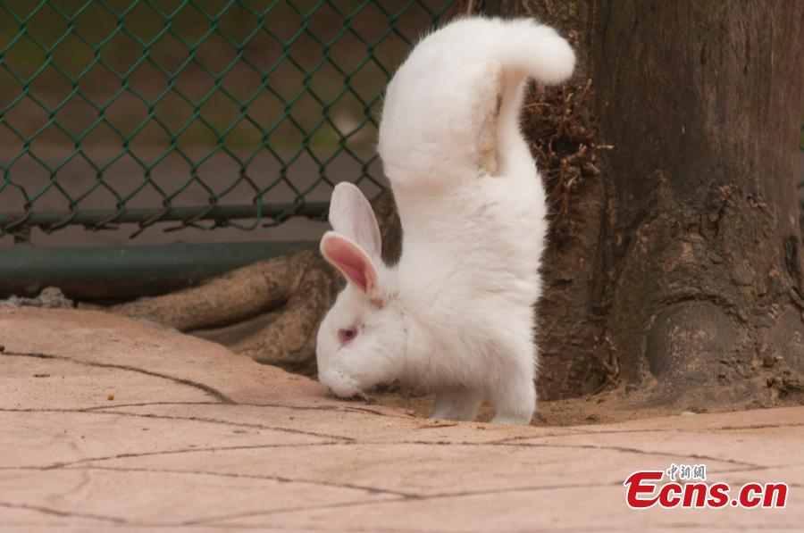 A rabbit walks on its forelegs at a zoo in Liuzhou, Southwest China’s Guangxi Zhuang autonomous region, Feb 12, 2015. The rabbit, which is dubbed “rabbit strong” and has become a celebrity on the Internet, is suspected to lose the use of hind legs for disability. [Photo: China News Service/Huang Weiming]
