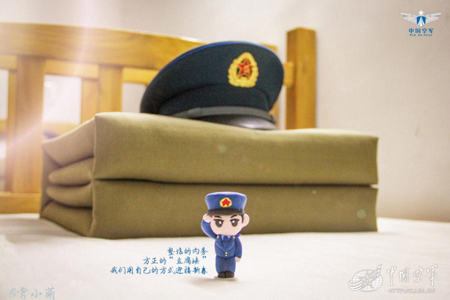 Adorable little doll soldiers representing Chinese Air Force "pose" for Spring Festival greetings. (Photo/KJ.81.CN)