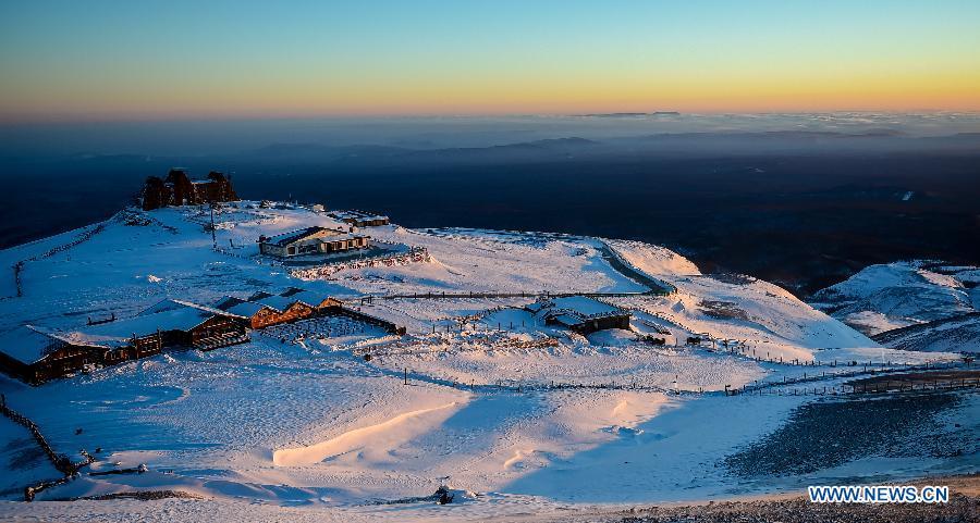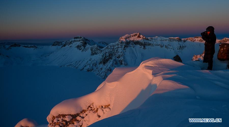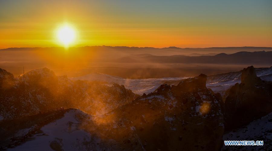 A sunrise is seen from the peak of Changbai Mountain Nature Reserve in northeast China's Jilin Province, Feb. 19, 2015, the first day of Chinese lunar new year. (Xinhua/Wang Haofei)