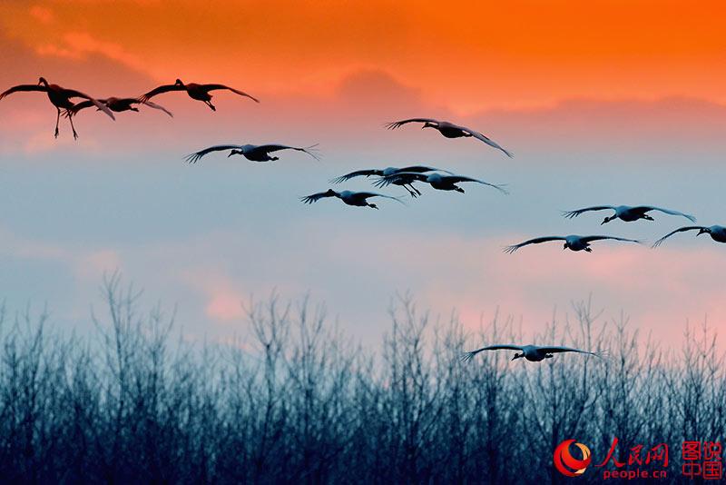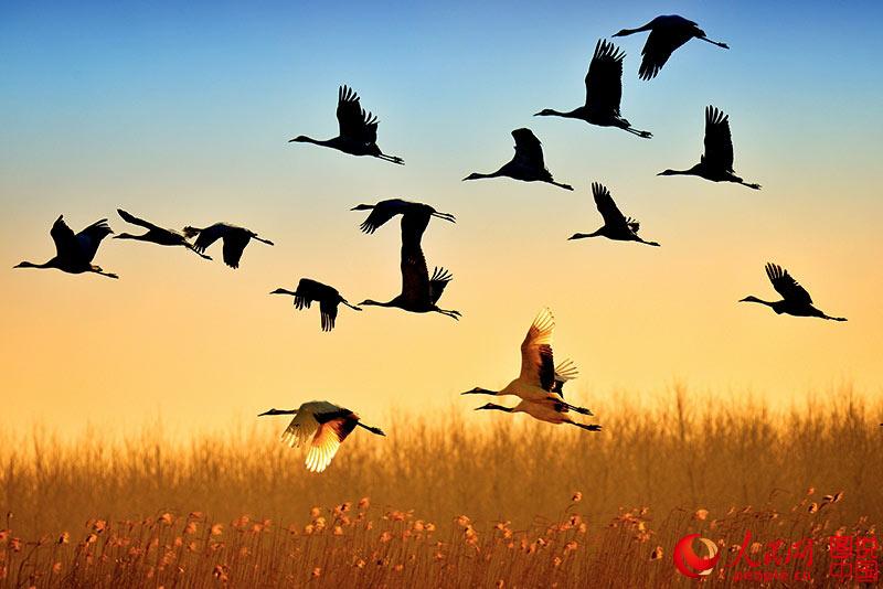 Red-crowned cranes in Yancheng national reserve, east China's Jiangsu province. (Photo/people.cn)