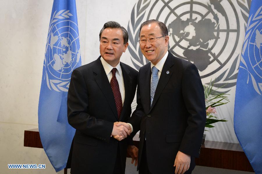 Chinese FM meets with Ban Ki-moon in New York (1/1)