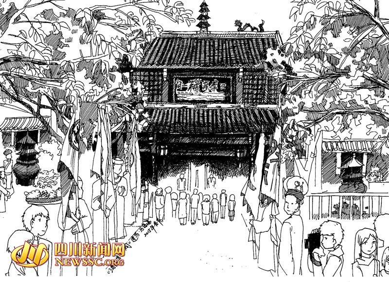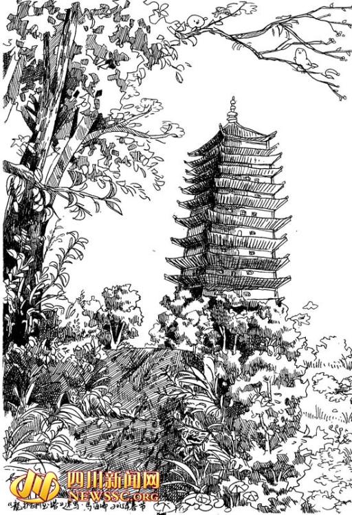 14-year-old girl makes sketches of hometown in holiday(1/7)