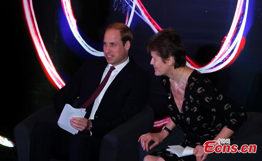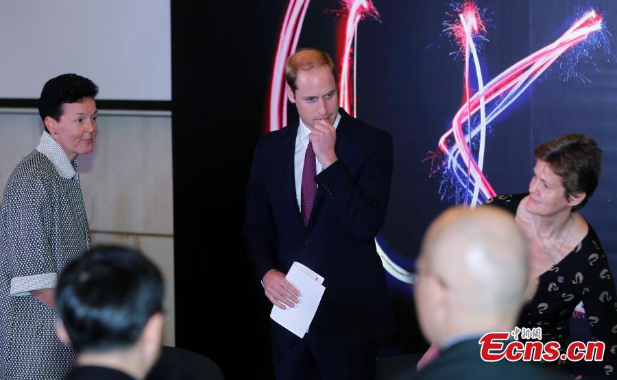 Britain's Duke of Cambridge, Prince William, delivers a speech at the award ceremony for Education UK Alumni Awards in Shanghai, Mar. 3,2015. William opened the GREAT Festival of Creativity in Shanghai to celebrate creativity and innovation through a unique partnership between the British Government and world-leading companies. (Photo: China News Service/Tang Yanjun)