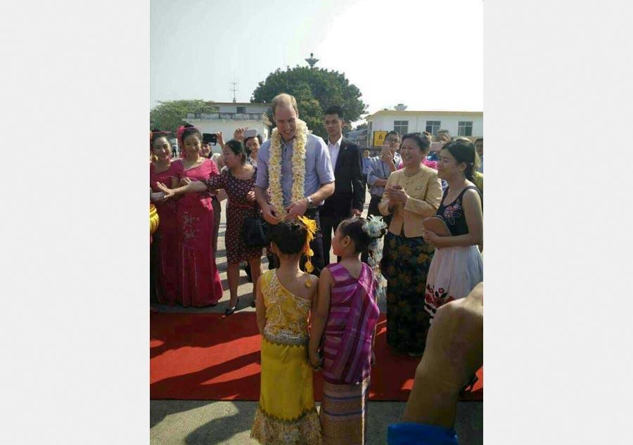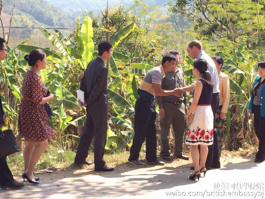 Britain's Duke of Cambridge, Prince William, visits a Dai village in south China's Yunnan province on March 4. (Photo/Sina Weibo of British Embassy in Beijing)