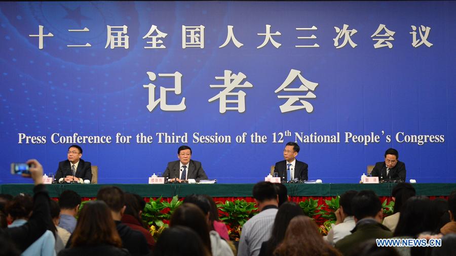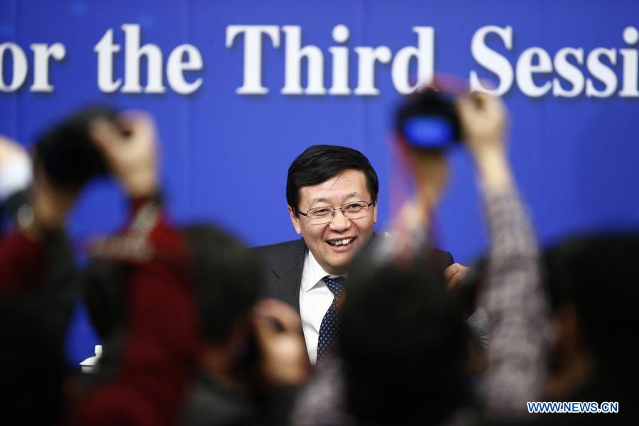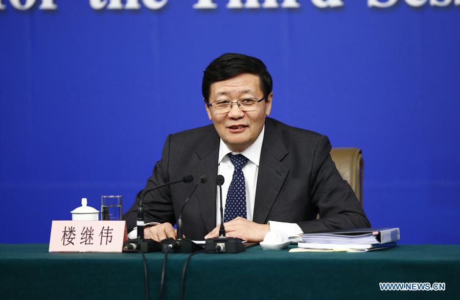 Chinese finance minister Lou Jiwei answers questions during a press conference for the third session of China's 12th National People's Congress (NPC) on fiscal and tax reform, in Beijing, capital of China, March 6,2015. (Photo: Xinhua/Yin Gang)