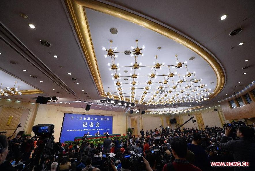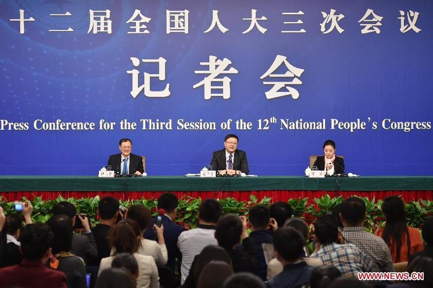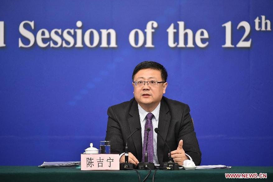 China's Minister of Environmental Protection Chen Jining gives a press conference for the third session of the 12th National People's Congress (NPC), on environmental protection in Beijing, capital of China, March 7, 2015. (Photo: Xinhua/Li Ran)