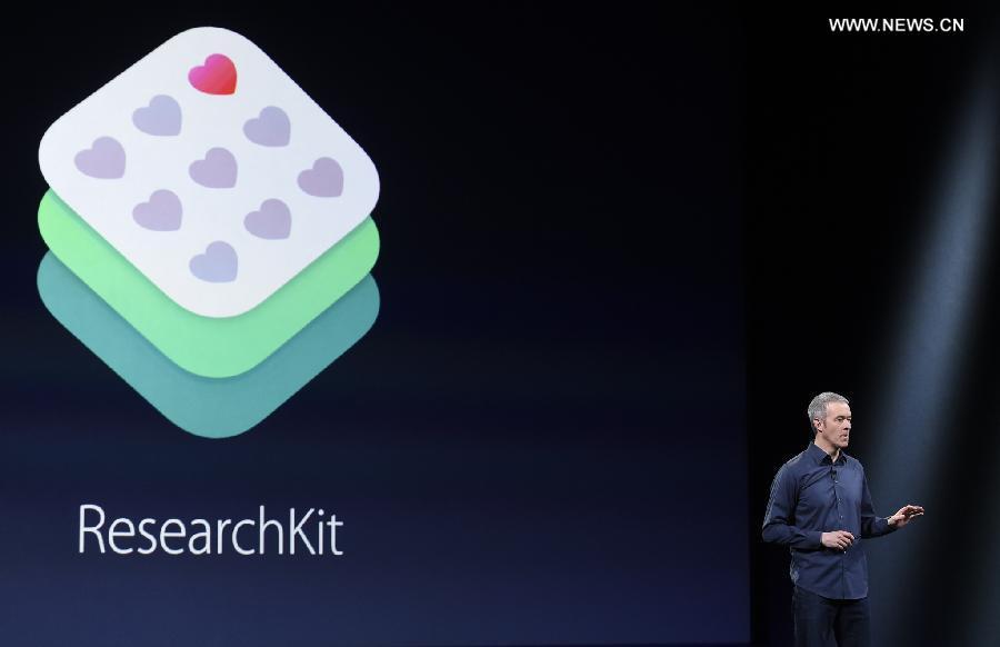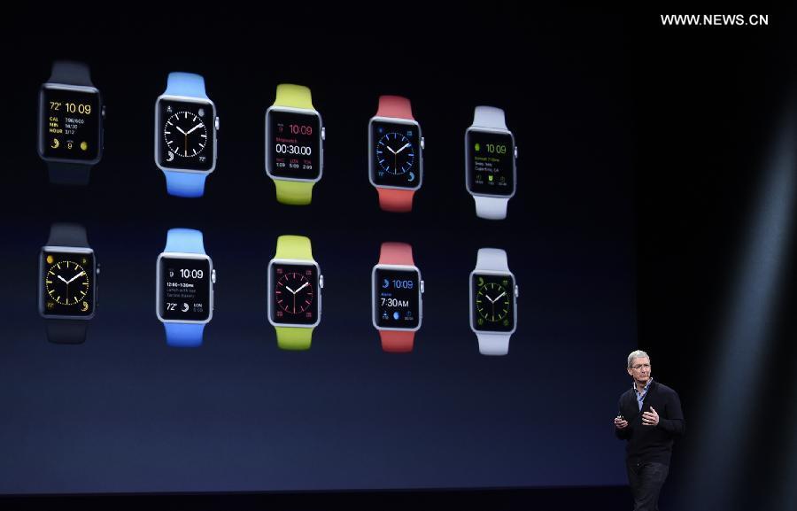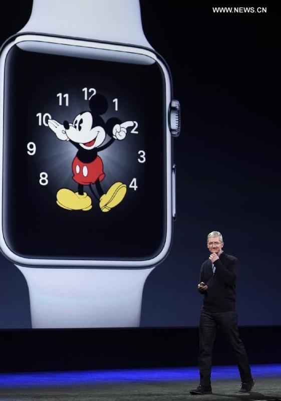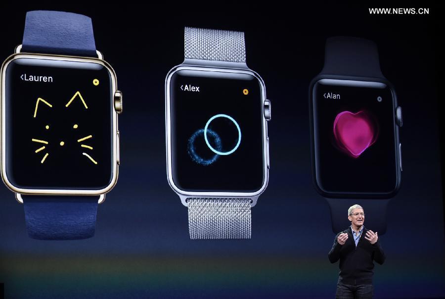 Apple's CEO Tim Cook introduces the Apple Watch during an Apple event in San Francisco, the United States, March 9, 2015. (Xinhua)