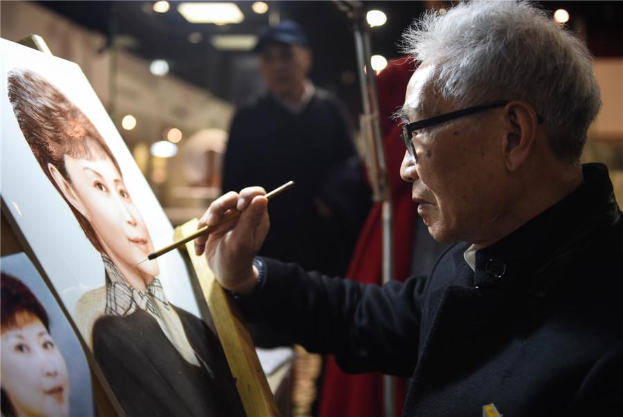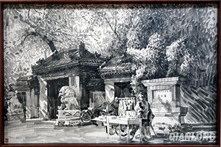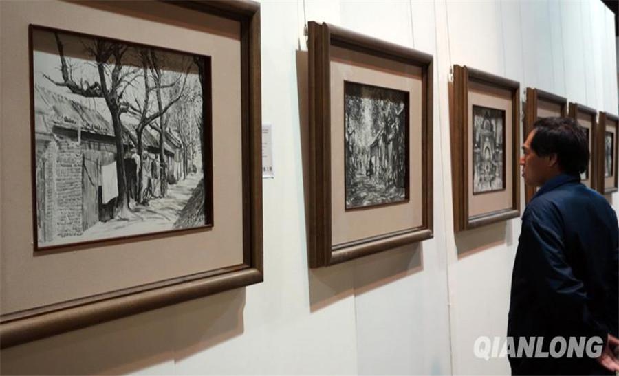 Artist Kuang Han's Beijing Hutong series of porcelain plate paintings is on display at the Nanchang Porcelain Plate Painting Exhibition, which opened at the Beijing Tiantan Art Gallery on March 8 and lasts till March 22.(Photo by Qi Lianmin/Qianlong)
