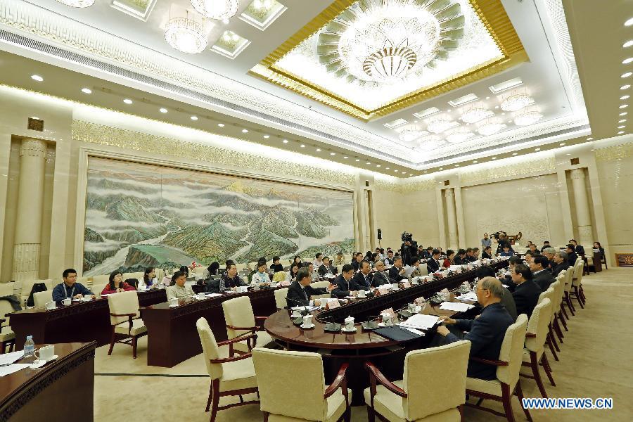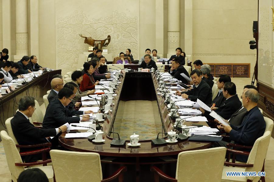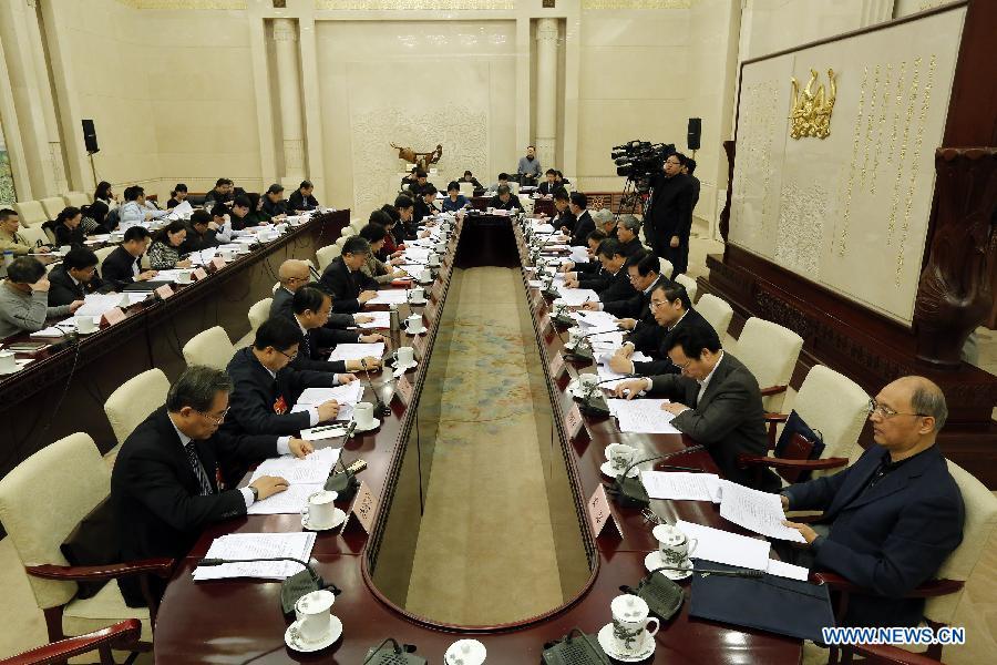 The Law Committee of the 12th National People's Congress (NPC) holds a meeting to deliberate on the draft revision to the Legislation Law in Beijing, capital of China, March 11, 2015. (Xinhua/Shen Bohan)