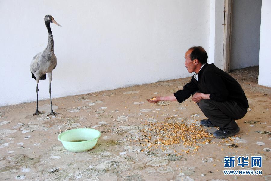 Zang Erjun made 80 yuan every month from 1997 to 2009; now his monthly salary is 300 yuan. He insists on working as a ranger. He said he does the job not for pay, but to protect black-necked cranes with love in his heart. (Photo: Xinhua/Yang Wenbin)