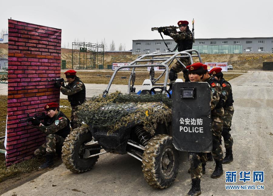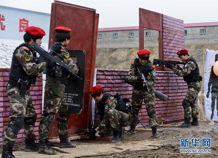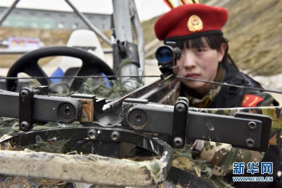 Li Changdan, a member of Snow Eagle Female Special Task Force, takes aim with a crossbow pistol during training in Northwest China’s Xinjiang Uygur autonomous region, March 12, 2015. The task force, the first of its kind in China, is developed from a unit of Xinjiang Border Police, established in April 2012. The unit has become a role model for its outstanding combat skills and contribution to the security of Xinjiang. (Photo/Xinhua)