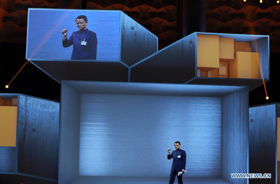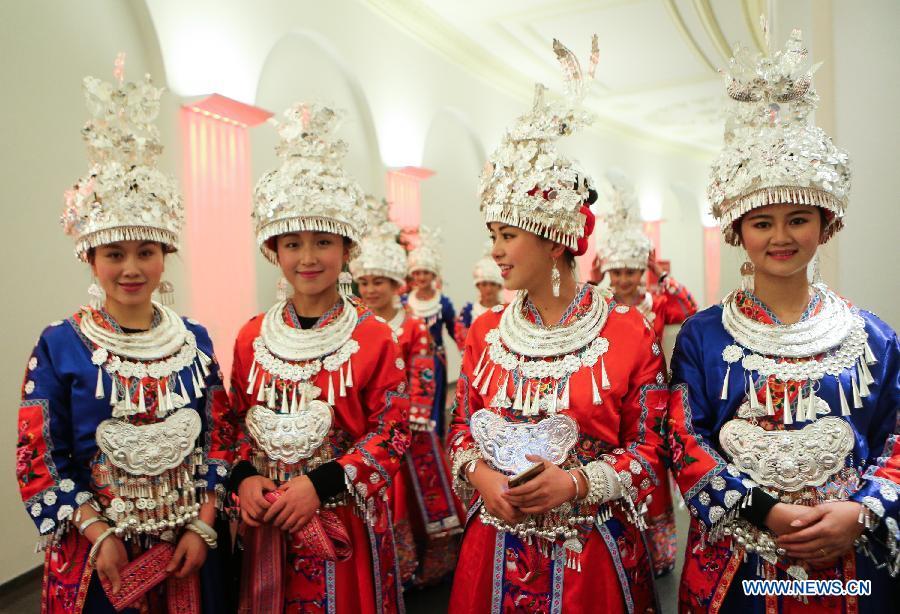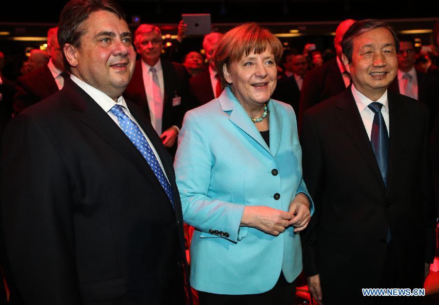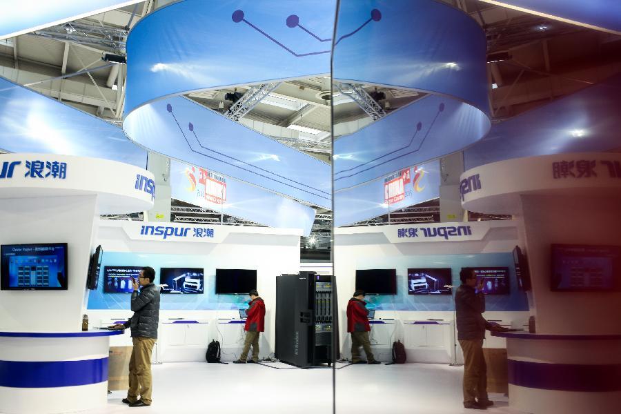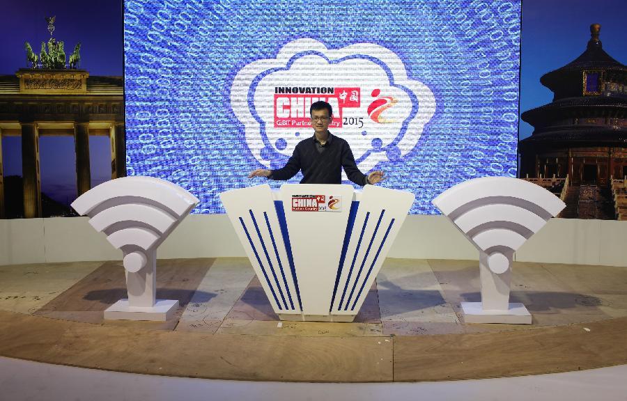 Two staff members work at Huawei's stand of the 2015 CeBIT Technology Trade fair in Hanover, Germany, on March 14, 2015. As the partner country of CeBIT 2015, the world's leading information technology trade fair, China would send over 600 exhibitors to the annual trade fair in Hanover in March. (Photo: Xinhua/Zhang Fan)
