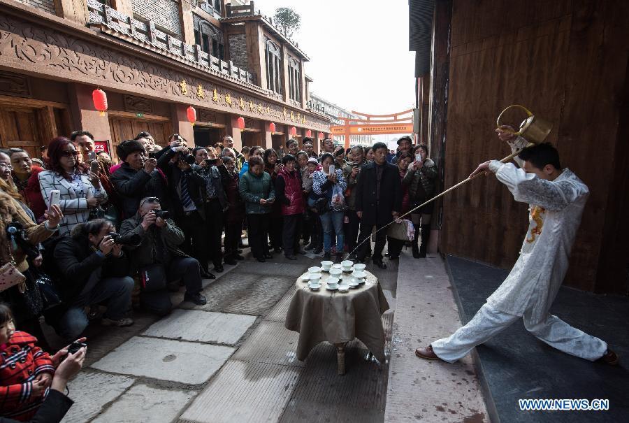 Workers bakes fresh tea leaves to make Mengding Tea at Yuehua Tea Company in Ya'an City, southwest China's Sichuan province, March 15, 2015. Tea makers are making tea with newly-picked tea leaves before the Qingming Festival, which falls on April 5 this year, as tea of this period of time is regarded to have a better taste. (Photo: Xinhua/Jiang Hongjing)