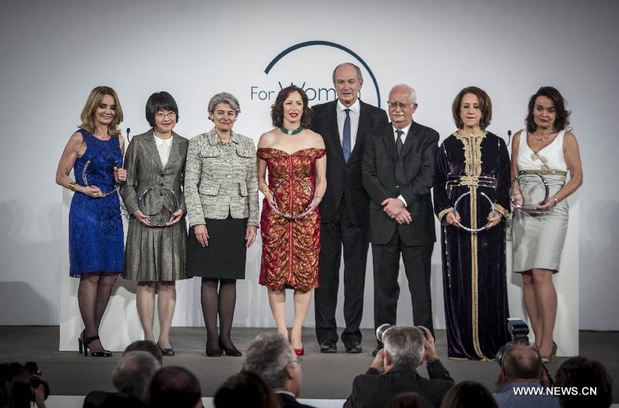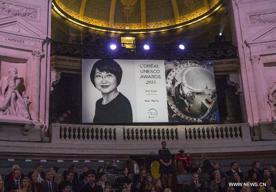Yi Xie, professor at the University of Science and Technology of China, attends the ceremony of L'Oreal-UNESCO For Women in Science Awards 2015, in Paris, France, March 18, 2015. Yi Xie, professor at the University of Science and Technology of China, was on Wednesday honored with the L'Oreal-UNESCO For Women in Science Awards 2015, together with four other women for their ground-breaking discoveries in physical sciences. (Photo: Xinhua/Chen Xiaowei)
