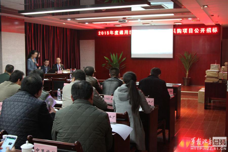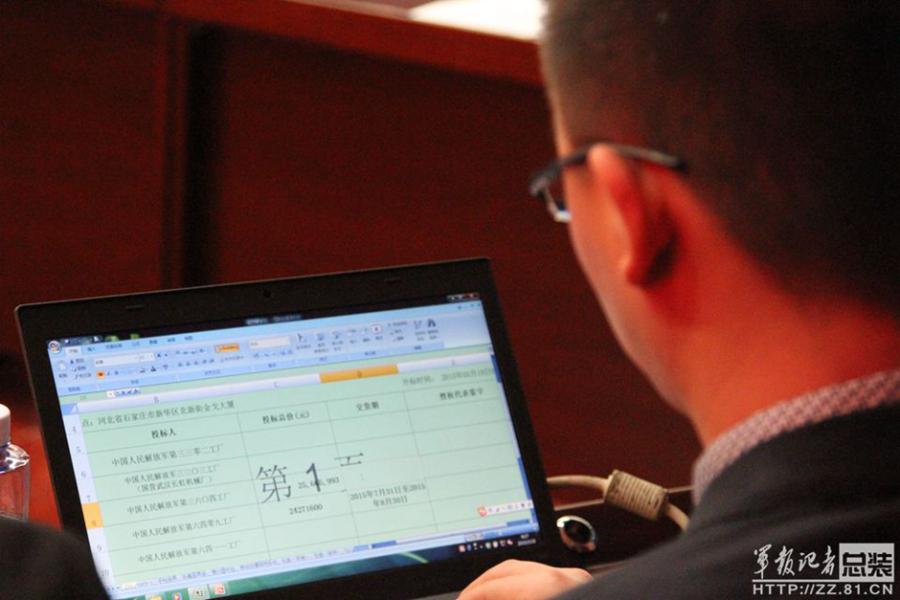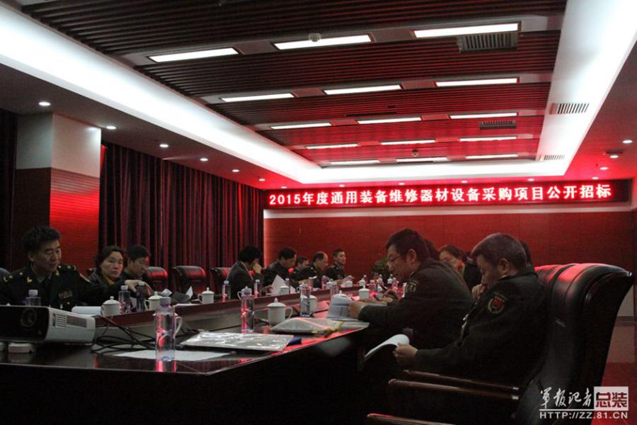 A bidding for military equipment supply is held at the Ordnance and Engineering College in Shijiazhuang, North China’s Hebei province, March 19, 2015. A total of 22 military and civil manufacturers bid for 35 items of maintenance equipment. This is the first time the new website for military weapon procurement, weain.mil.cn, under the General Armament Department of the People's Liberation Army, has organized open bidding, as China expands reforms concerning the procurement of military equipment. (Photo provided by PLA Daily)