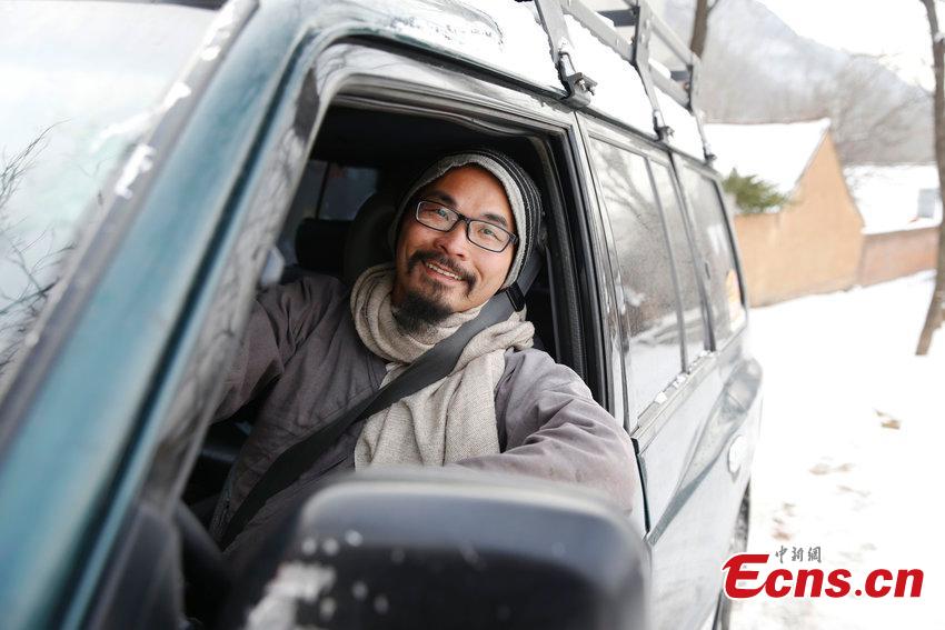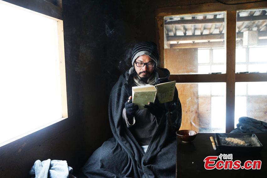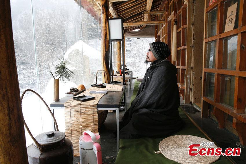 Liu Jingchong, dressed in plain suit, sits in a glassed-in wooden house in the Zhongnan Mountains in northwest China’s Shaanxi province, March 20, 2015. From Foshan city in south China’s Guangdong province, Liu gave up a job with an annual income of one million yuan ($160,000) for a life of seclusion. Since ancient times, the Zhongnan Mountains have been a popular dwelling place for Taoist hermits and Buddhist monks, attracting people seeking refuge from the noise of modern life. (Photo/CFP)