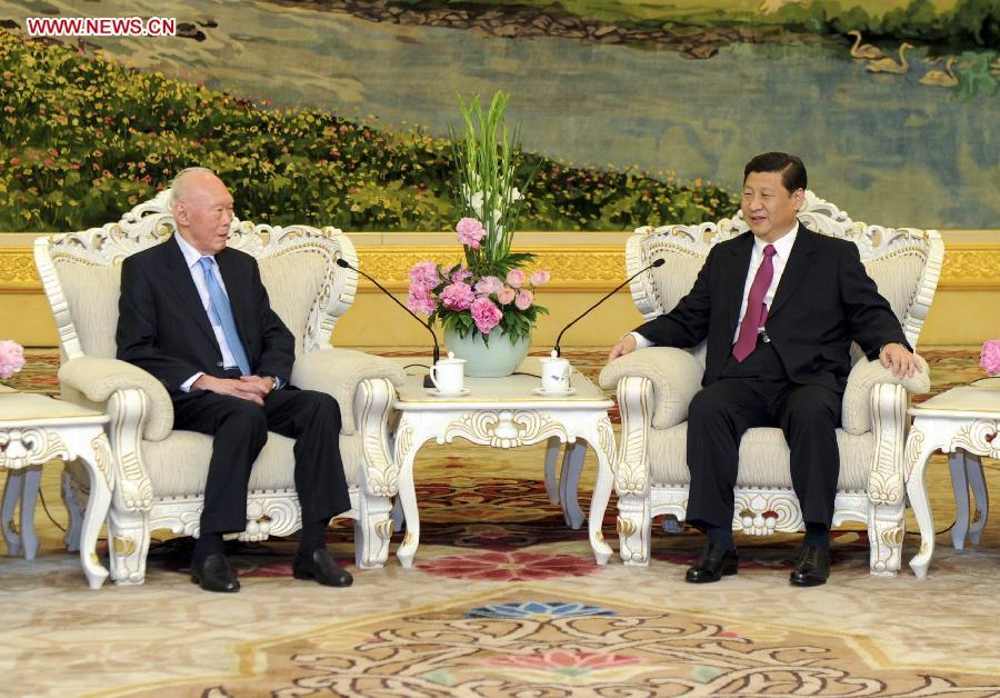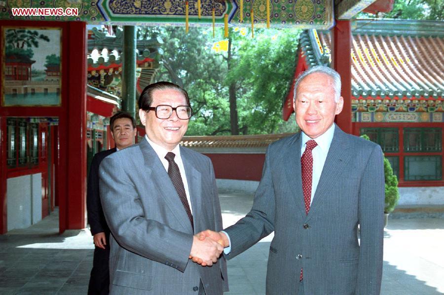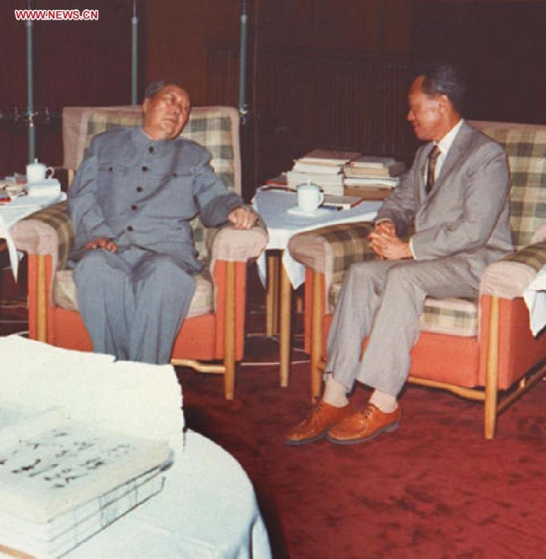 File photo taken on May 12, 1976 shows China's Chairman Mao Zedong meeting with Lee Kuan Yew (R), in Beijing, capital of China. Lee Kuan Yew, former prime minister of Singapore, died at 3:18 a.m. on March 23, 2015 at the age of 91. (Photo: Xinhua/Du Xiuxian)