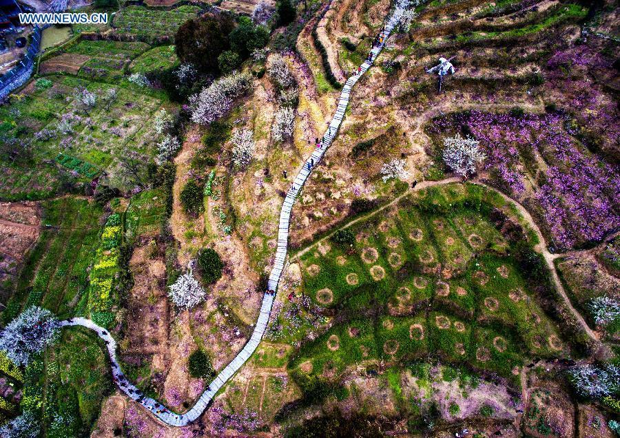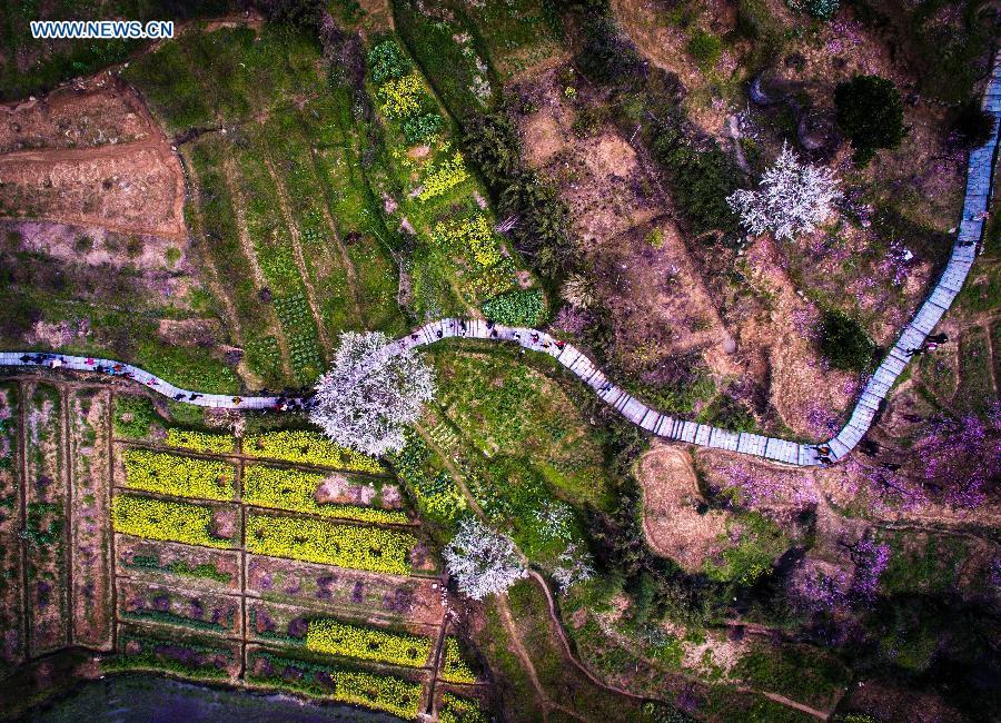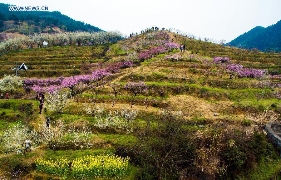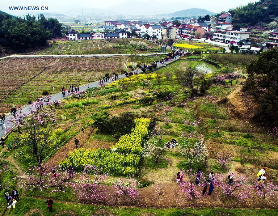 Photo taken on March 23, 2015 shows the scenery in Yangshanfan Village in Tonglu County of Hangzhou City, capital of east China's Zhejiang province. Various flowers blossom during Spring in Tonglu, attracting tourists to visit the County and promoting the local tourism. (Photo: Xinhua/Xu Yu)