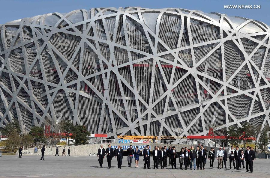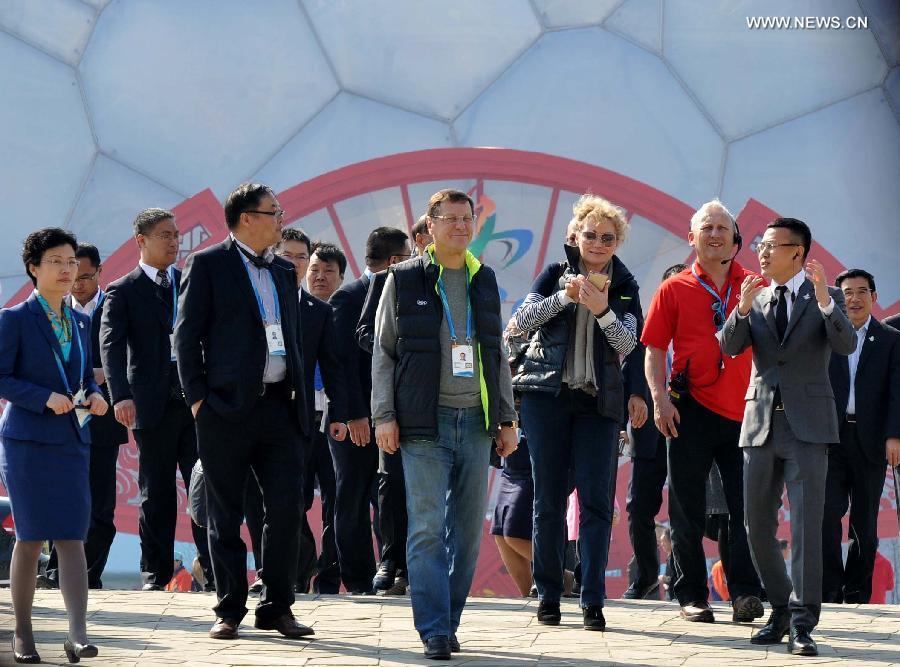 Members of the 2022 Evaluation Commission of the International Olympic Committee (IOC) visit the National Stadium in Beijing on March 24, 2015. The International Olympic Committee (IOC) team is visiting Beijing this week to assess its bid to host the Games ahead of a July vote that the Chinese capital -- which hosted the spectacular 2008 summer Games. (Photo: Xinhua/Gong Lei)