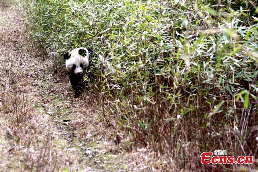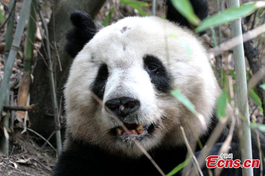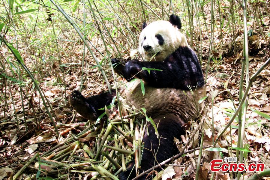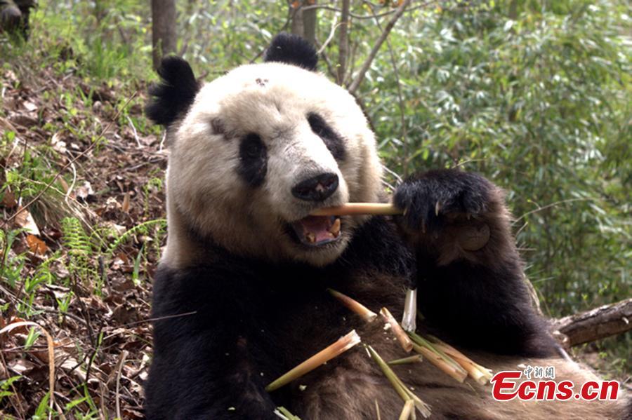 A giant panda eats bamboo at the Foping Nature Reserve in Northwest China’s Shaanxi province. A report of the fourth panda survey in Shaanxi province, released on March 25, shows that there are about 345 wild giant pandas living in the Qinling Mountains area, an increase of 26.4 percent than the third survey. Most pandas live on the southern slope of the middle section of Qinling Mountains. (Photo provided to China News Service)