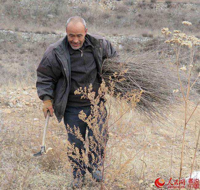 Liu Daolin cuts and collects wickers in the hills in his village. (Photo/chinapic.people.com.cn)