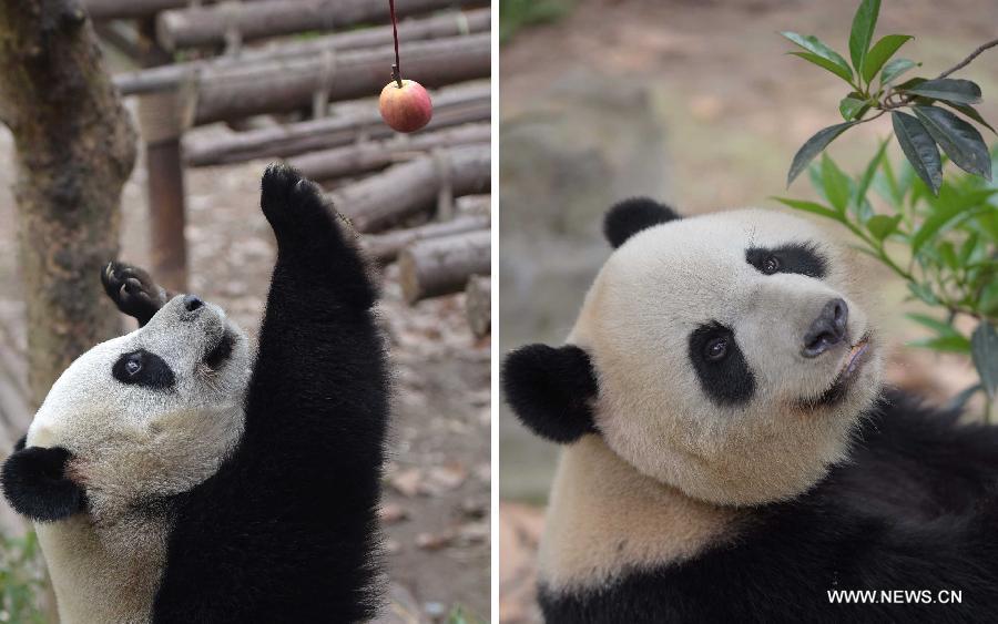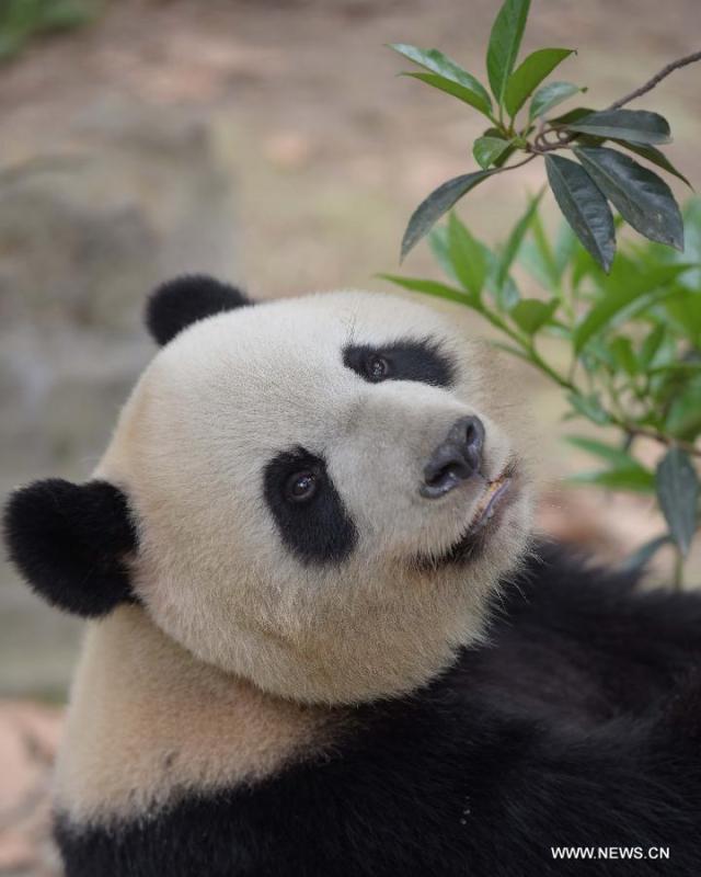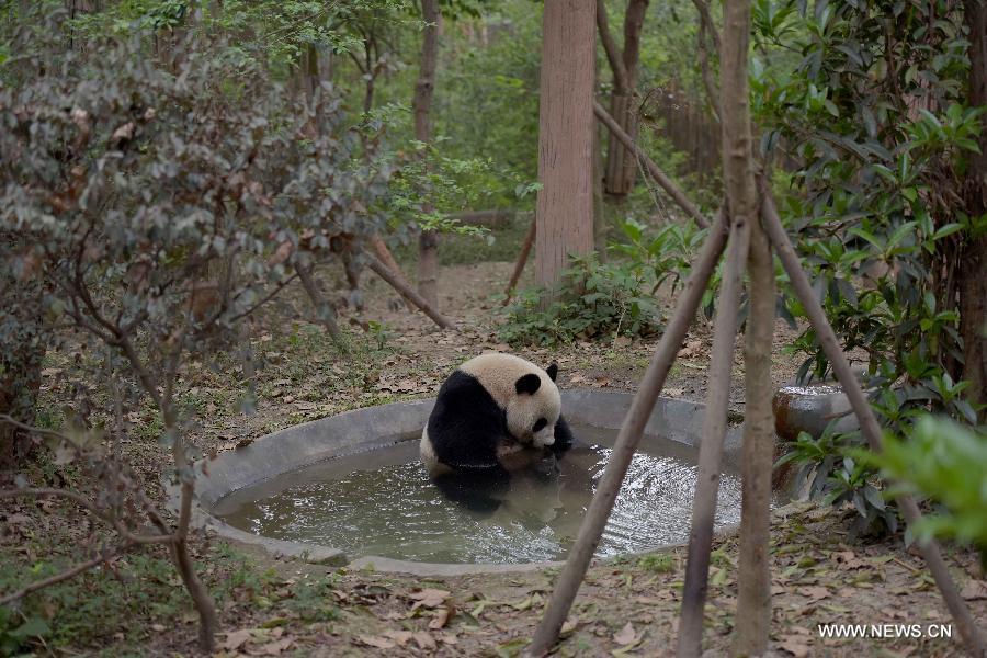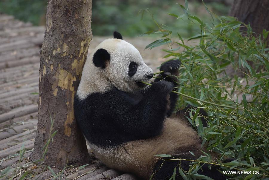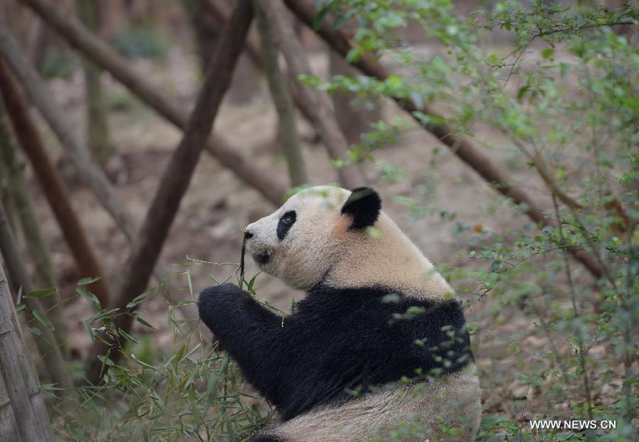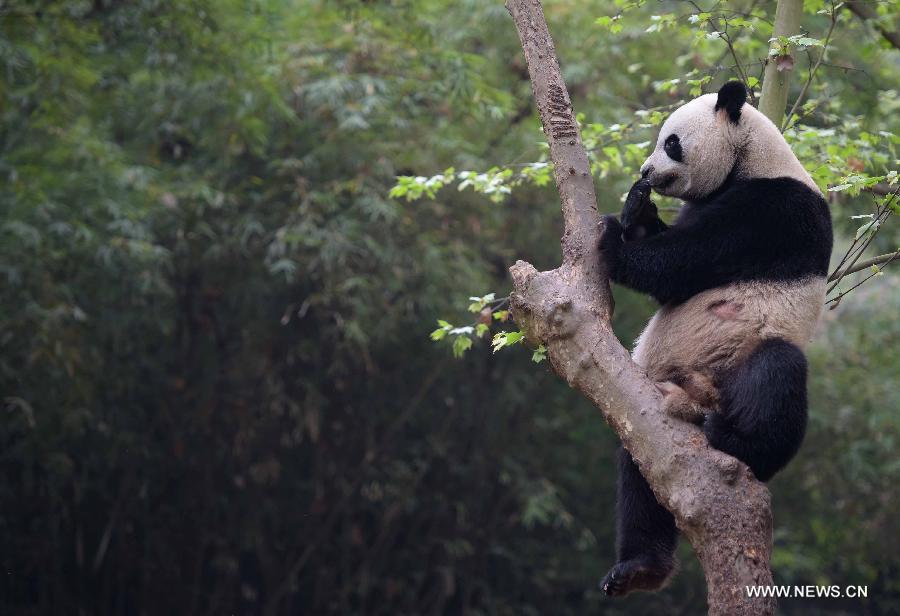 Photo taken on March 31, 2015 shows giant panda Yalin at the Chengdu Research Base of Giant Panda Breeding in southwest China's Sichuan Province. A pair of giant pandas, the female one Shurong and the male one Yalin, were selected from 55 candidates who met the age requirement on Tuesday as gifts from the central government to Macao after three months of deliberation. The pandas, both 110 kilograms in weight, will be flown to Macao at the beginning of May, taking the place of two pandas previously sent as gifts. (Xinhua/Xue Yubin)