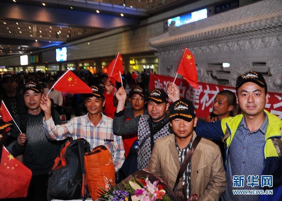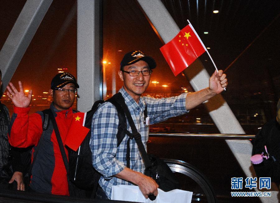 The first group of 104 Chinese nationals evacuated from war-torn Yemen arrive at Beijing Capital International Airport late on March 31, 2015. Another 476 people were evacuated to Djibouti and were waiting for aircraft to fly back to China. (Photo/Xinhua)