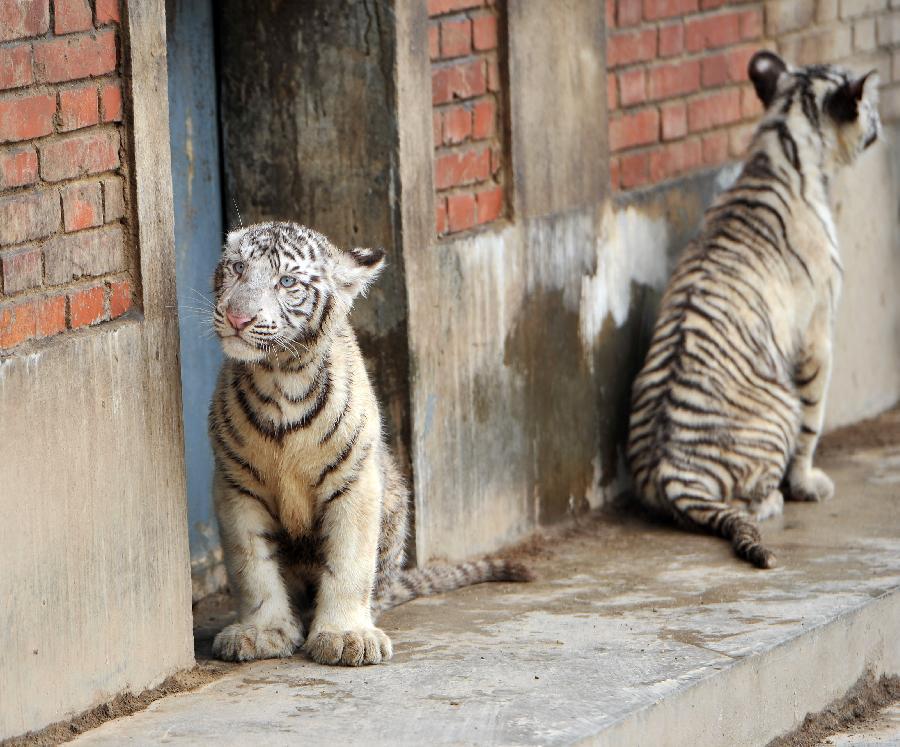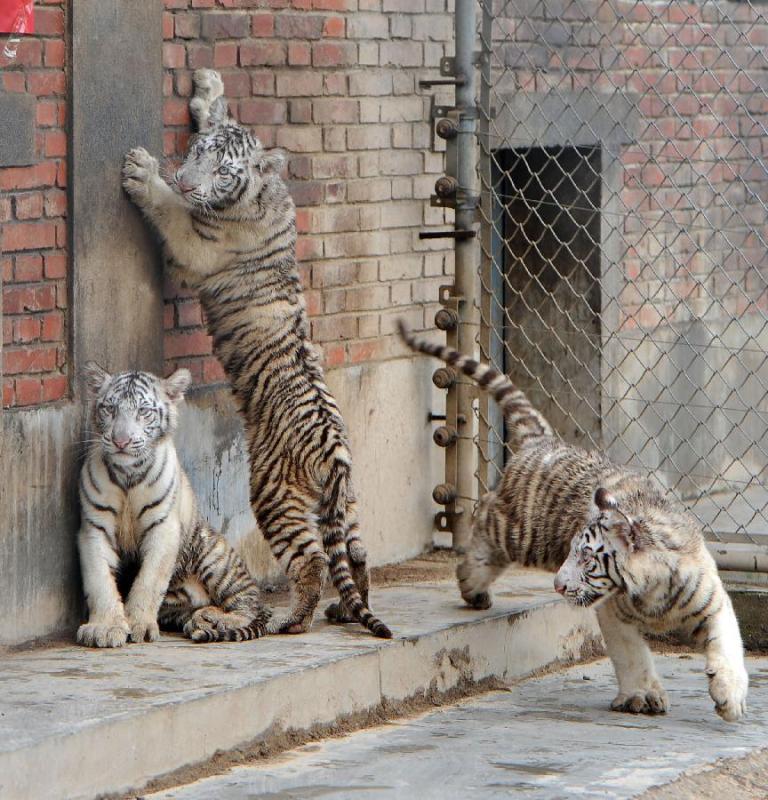 White tiger triplets make 1st public appearance at Qingling Wildlife Park(1/5)
