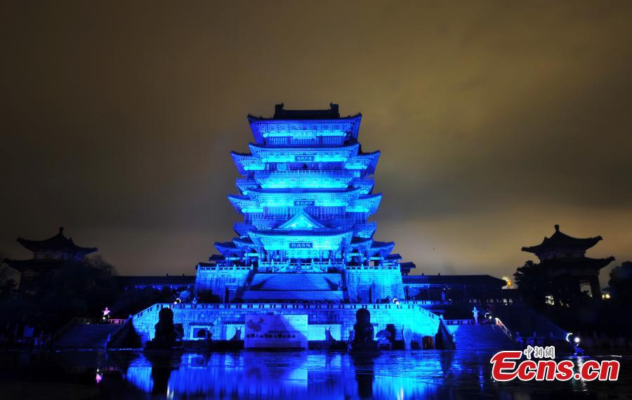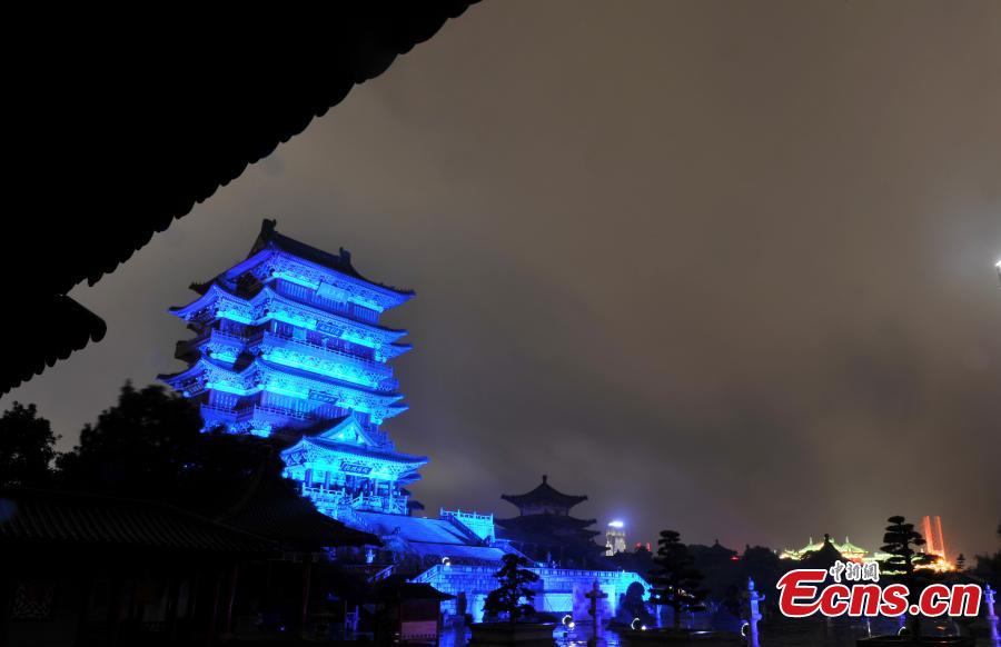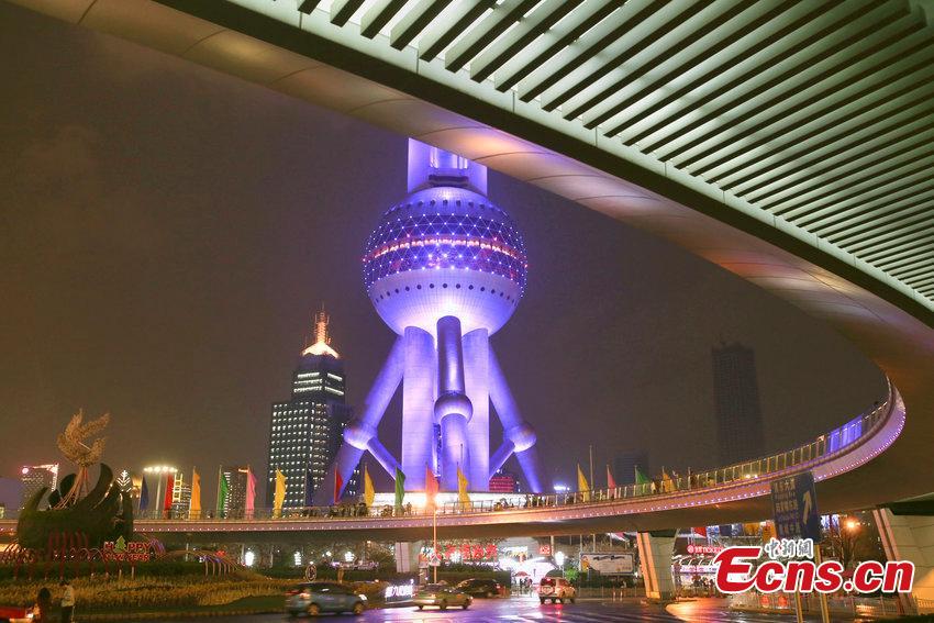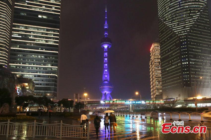 Landmark buildings in Shanghai, Hangzhou, Nanchang and many other cities across China illuminate blue on the evening of Thursday, April 2, 2015 in support of Autism Speaks' global annual Light It Up Blue (LIUB) campaign to commemorate World Autism Awareness Day. (Photo/CFP)