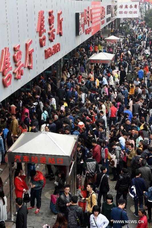 Passengers queue to get on trains at Zhengzhou Railway Station in Zhengzhou, capital city of central China's Henan Province, April 3, 2015. Zhengzhou received a travel rush during China's traditional Qingming Festival, or Tomb-sweeping Day, which falls on April 5 this year. (Xinhua/Li Bo)