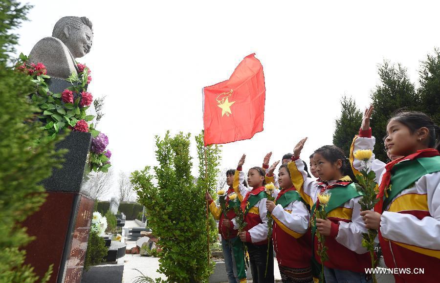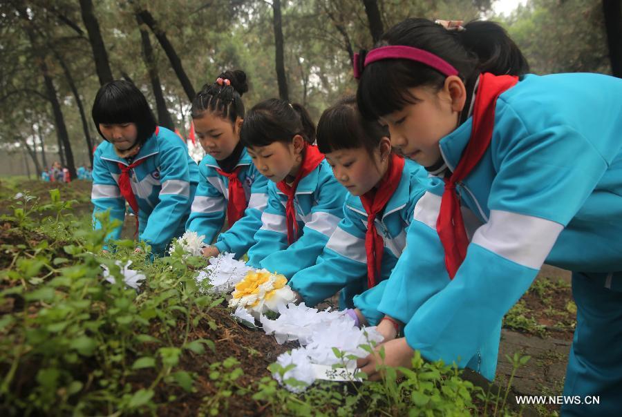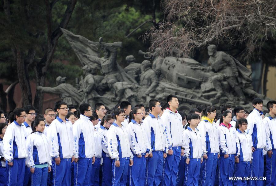 Students write to mourn for departed relatives and martyrs in Beijing, April 3, 2015. China's traditional Qingming Festival, or Tomb-sweeping Day, falls on April 5 this year. (Photo: China News Service/Wei Ying)