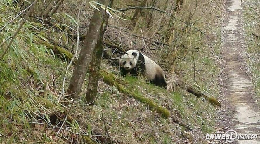 A wild giant panda is spotted near a village in Yueba town, Hanzhong, Northwest China’s Shaanxi province, April 7, 2015. Local farmer He Qinggui found the national treasure chewing bamboo beside a road and watched it for about five minutes. He took pictures of the panda, which was friendly and lovely, and then left the animal to enjoy its favorite food. (Photo: He Qinggui/cnwest.com)
