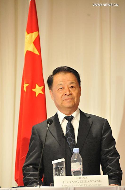 Chinese Transport Minister Yang Chuantang attends a press conference in Kuala Lumpur, Malaysia, April 16, 2015. Senior officials from Malaysia, Australia and China met here Thursday for the MH370 Third Tripartite Ministerial Meeting, agreeing that the search zone will be doubled if the missing Malaysian aircraft is not found in the current search area of 60,000 square kilometers. (Photo: Xinhua/Wang Dawei)