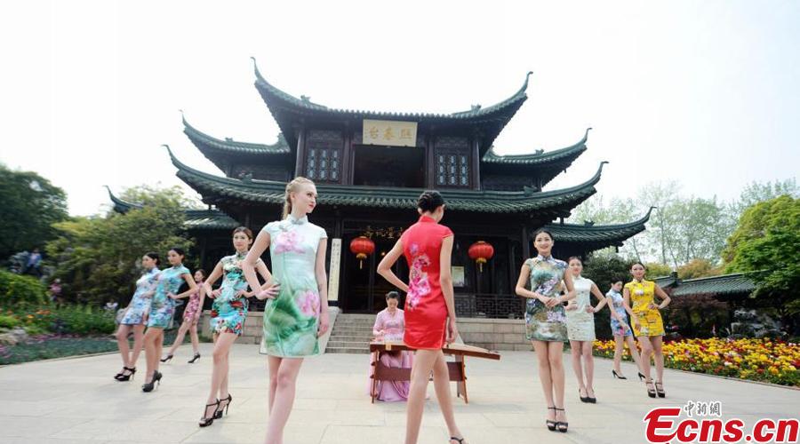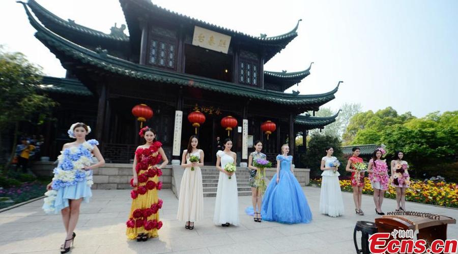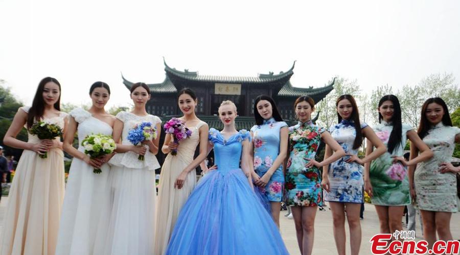 Models from home and abroad take part in an opening ceremony of Tourism Festival themed of Flowery March International Economic and Trade and in Yangzhou, east China's Jiangsu Province, April 18, 2015. (Photo: Meng Delong/chinanews.com)