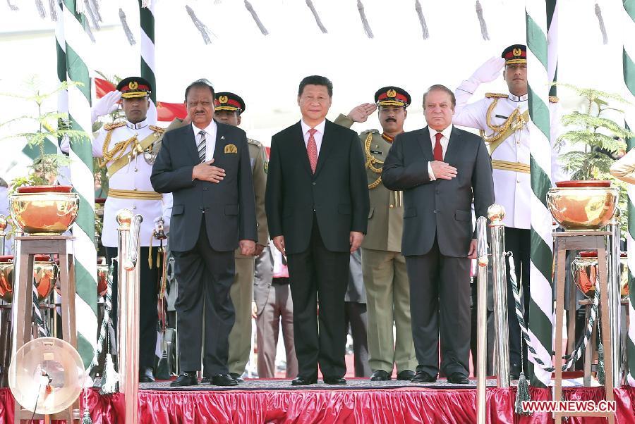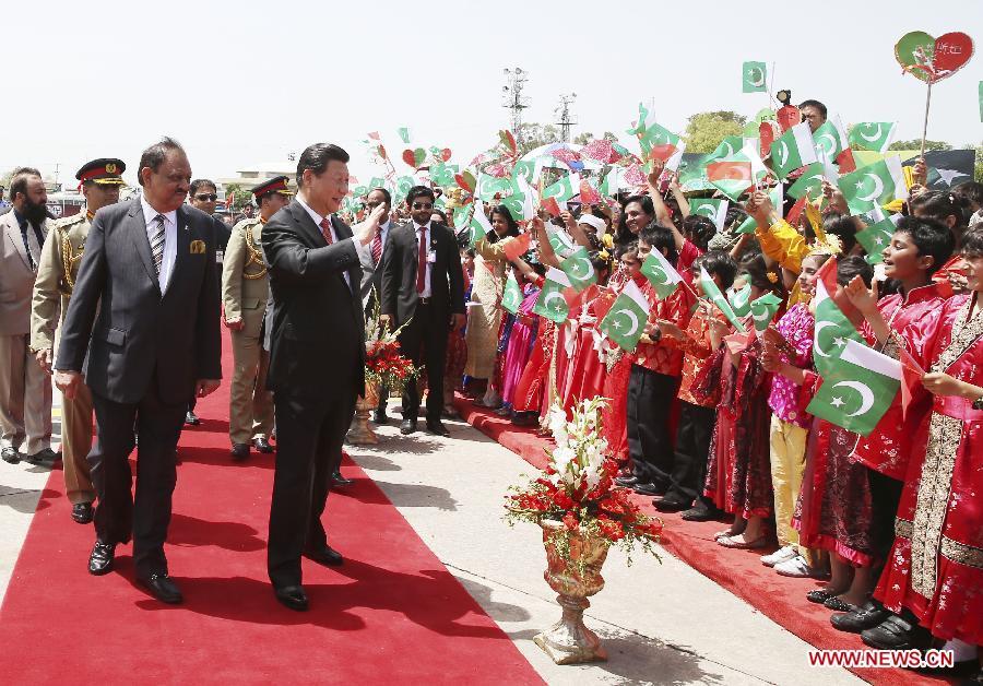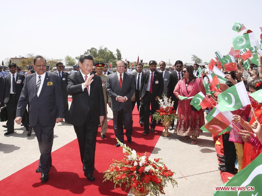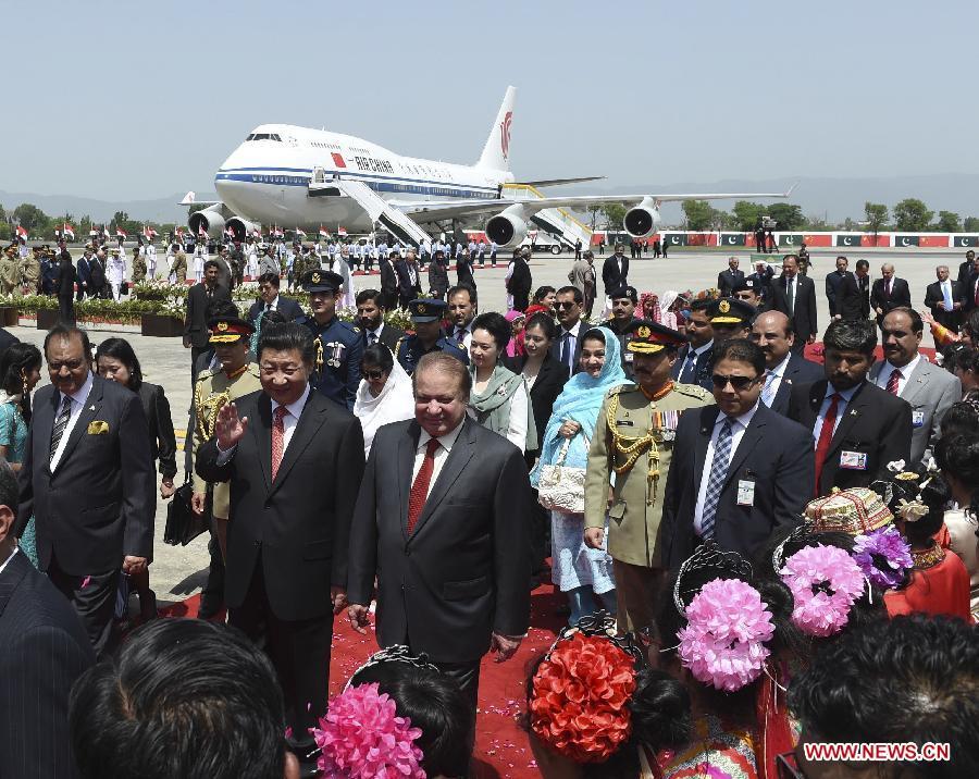 Chinese President Xi Jinping (L) and his wife Peng Liyuan wave hands to the crowd upon their arrival in Islamabad, Pakistan, April 20, 2015. Xi is on a state visit to Pakistan. (Photo: Xinhua/Li Xueren)